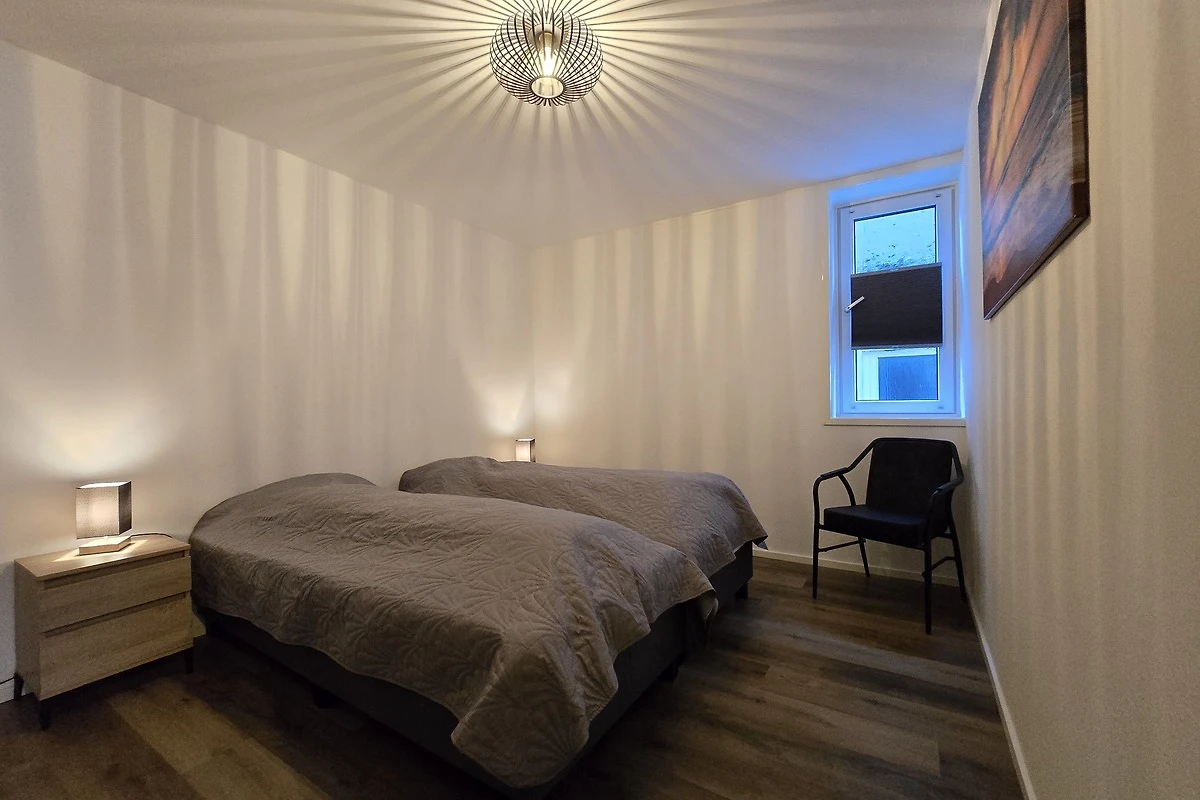 Bestaande uit een slaapkamer met een tweepersoonsbed en een slaapkamer met twee eenpersoonsbedden met voldoende kastruimte.