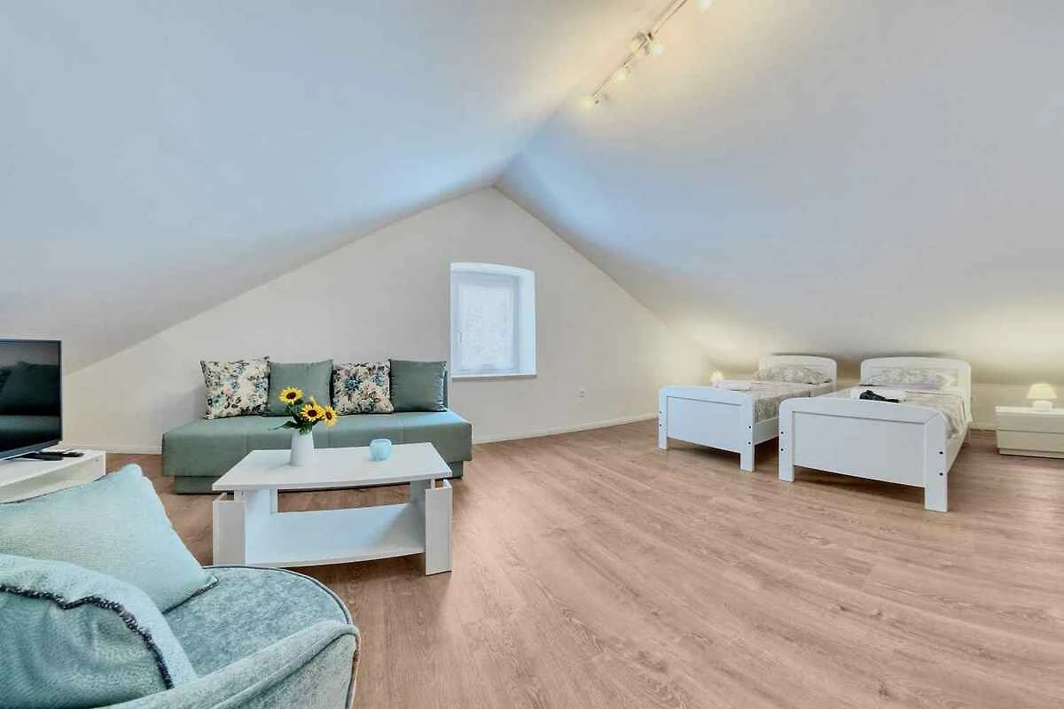 Ligging: Kraljevica. Het modern ingerichte vakantiehuis ligt rustig, alleenstaand, in een woongebied en aan de rand van de plaats. Toegang via een zijstraat (geasfalteerd). Winkel 400 m. Restaurant 70 m. Gemeentecentrum 500 m. Arts, Bank elk 500 m in Kraljevica. Vliegveld in Omišalj 2 km.