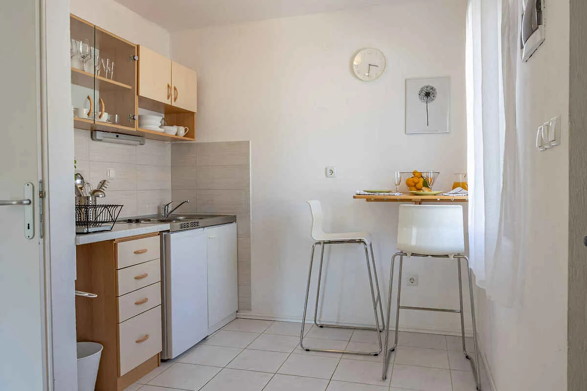 Ligging: Vrboska. De vakantiewoning ligt in een appartementenhuis en is modern ingericht. Het grondstuk is in het centrum. Deze plaats is populair vanwege het uitzicht op de bossen en het ligt op een zonnige plek. Het strand waar u kunt zwemmen en zonnebaden is een rotsachtig kiezelstrand met grotere stenen en ligt op 1000 meter van de accommodatie. Neem zeker een handdoek en zonnebrandcrème mee naar het strand en, als je wat langer blijft, een verfrissend drankje en iets lichts te eten, zoals seizoensfruit. De dichtsbijzijnde winkels zijn op 400 m afstand, restaurant 400 m en centrum 400 m. Vrboska: discotheek 1500 m en dokter, apotheek, bank elk 4 km.