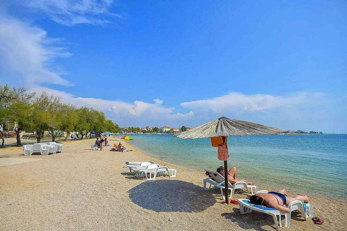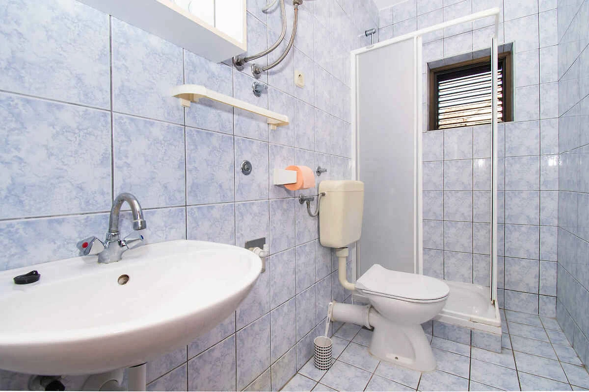Ligging: Srima. De vakantiewoning ligt in een appartementenhuis en is functioneel ingericht. Het grondstuk is aan de rand van de plaats. Deze plaats is populair vanwege het uitzicht op de zee en het ligt bij het water. De toegangsweg naar het terrein gaat via een zijstraat. Bij het huis zijn parkeerplaatsen op het perceel beschikbaar. De dichtsbijzijnde winkels zijn op 400 m afstand, restaurant 200 m en centrum 600 m.