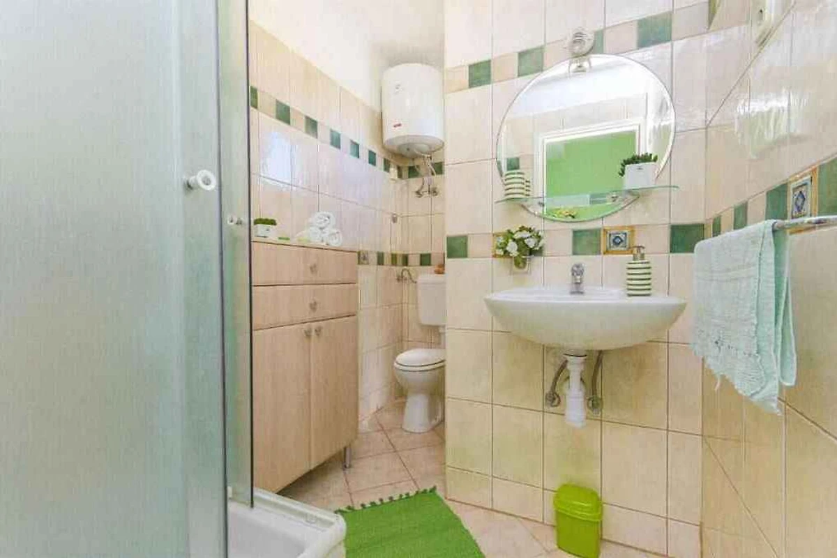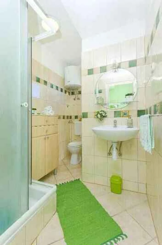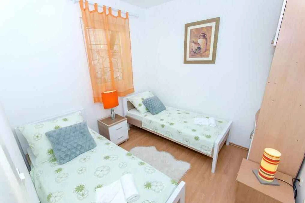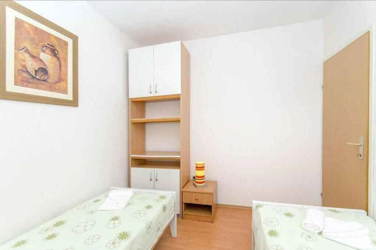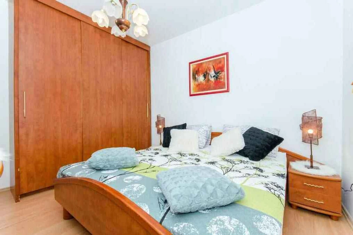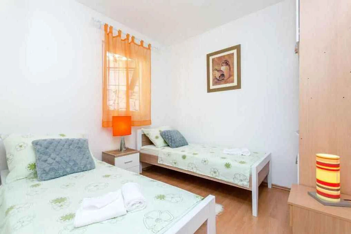 Uw vakantiewoning: Uw vakantiewoning beslaat 1 verdieping, 3 kamers (daarvan 2 slaapkamers), is 50 m² groot en is geschikt voor maximaal 5 personen. Een airconditioning zorgt op hete dagen voor een aangename temperatuur. De indeling van de kamers is als volgt: woonkamer met 1 extra bed op slaapbank, zithoek, eethoek en TV. De eethoek heeft plaats voor 5 personen. slaapkamer 8 m² groot en met 2 éénpersoonsbedden. slaapkamer 10 m² groot en met 1 tweepersoonsbed. kookhoek in de woonkamer met afwasmachine, elektrisch fornuis (4 kookplaat), koelkast (vriesvak), magnetron, koffiemachine en elektrische waterkoker. badkamer met douche, WC en venster.