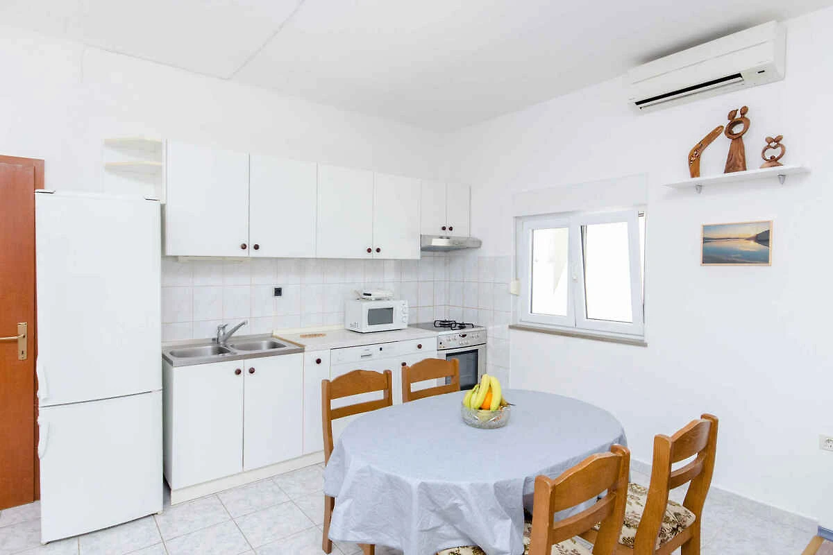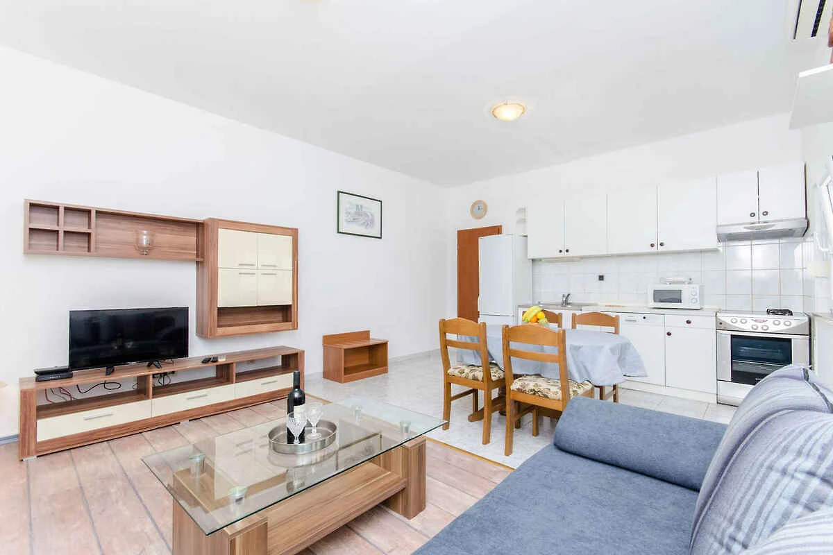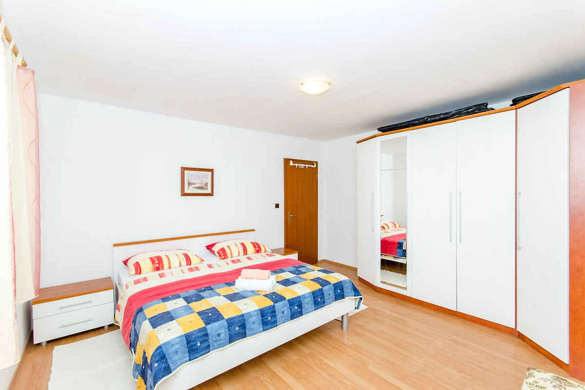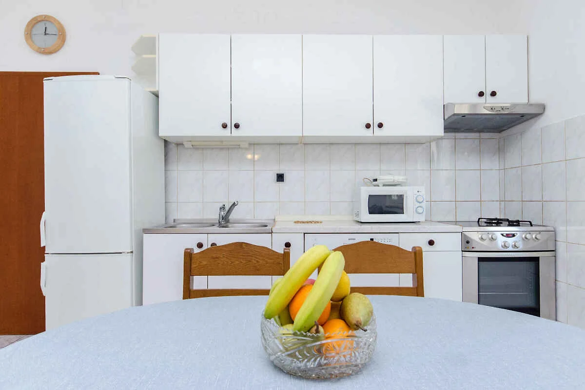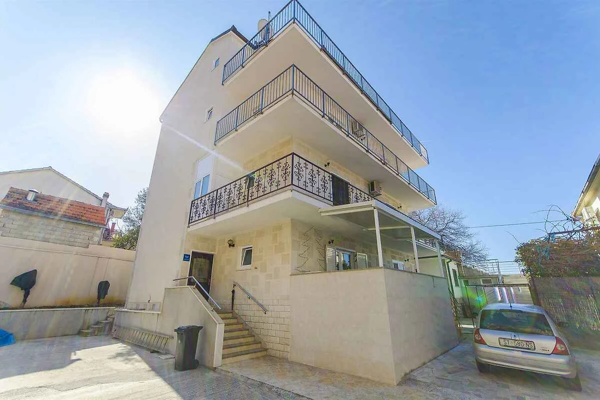 Ligging: Trogir. De vakantiewoning ligt in een appartementenhuis en is in lokale stijl ingericht. Het grondstuk is in het centrum. Deze plaats is populair vanwege het ligt bij het water op een rustige en zonnige plek. De toegangsweg naar het terrein gaat via een zijstraat. Bij het huis zijn parkeerplaatsen op het perceel beschikbaar. De dichtsbijzijnde winkels zijn op 50 m afstand, restaurant 50 m en centrum 300 m. vliegveld in Splitsen 5 km. Trogir: discotheek 100 m, dokter 1000 m en apotheek, bank elk 200 m.