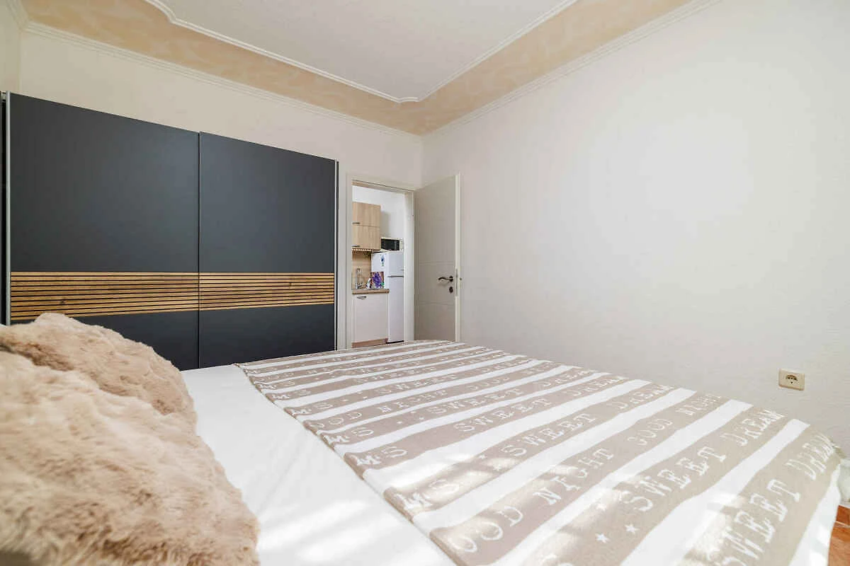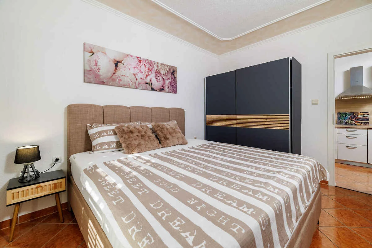Uw vakantiewoning: Uw vakantiewoning beslaat 1 verdieping, 2 kamers (daarvan 2 slaapkamers), is 30 m² groot en is geschikt voor maximaal 4 personen. Een airconditioning zorgt op hete dagen voor een aangename temperatuur. De indeling van de kamers is als volgt: slaapkamer met 2 éénpersoonsbedden, TV, radio en safe. U heeft toegang tot het balkon. slaapkamer met 1 tweepersoonsbed. U heeft toegang tot het balkon. kookhoek met eethoek, afwasmachine, elektrisch fornuis, afzuigkap, koelkast (vriesvak), magnetron, koffiemachine, broodrooster en elektrische waterkoker. badkamer met douche, WC, bidet, haardroger en wasmachine.