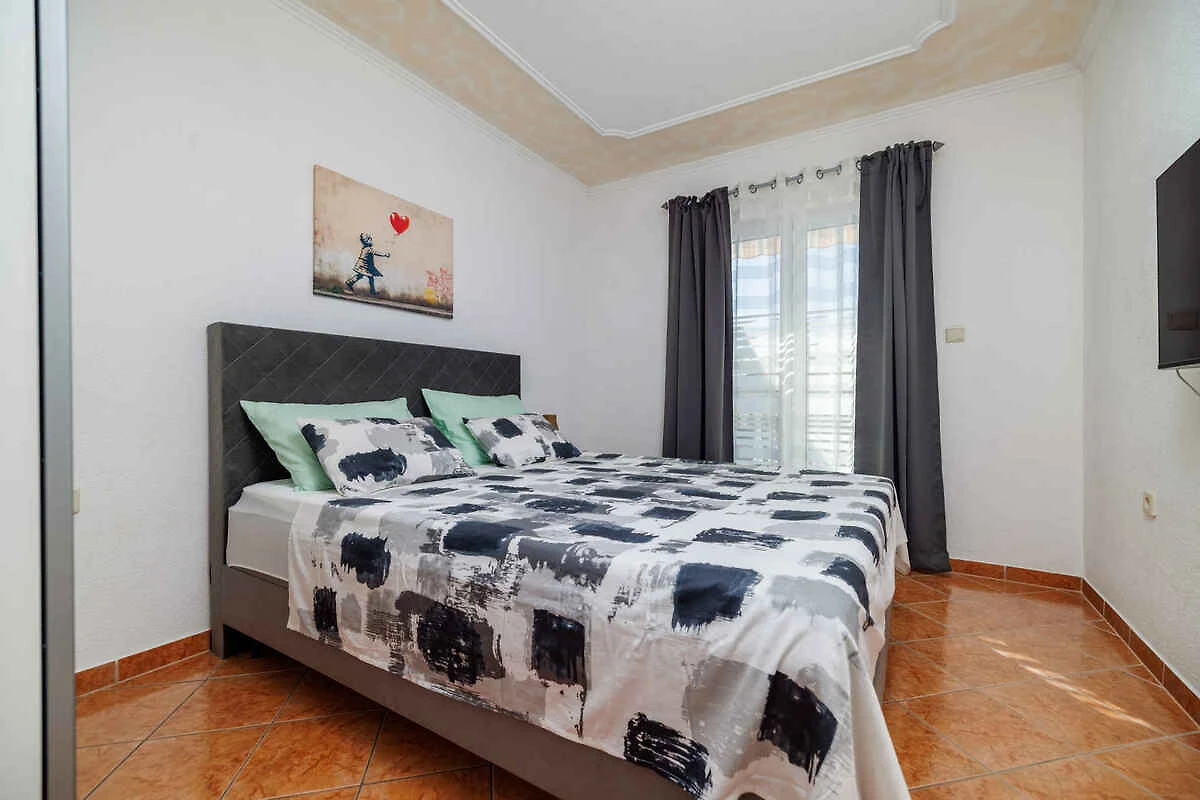 Ligging: Selce. De vakantiewoning ligt in een appartementenhuis en is modern ingericht. Het grondstuk is in het centrum. Deze plaats is populair vanwege het uitzicht op de zee. De toegangsweg naar het terrein gaat via een zijstraat. Bij het huis zijn parkeerplaatsen op het perceel beschikbaar. De dichtsbijzijnde winkels zijn op 200 m afstand, restaurant 200 m en centrum 400 m.