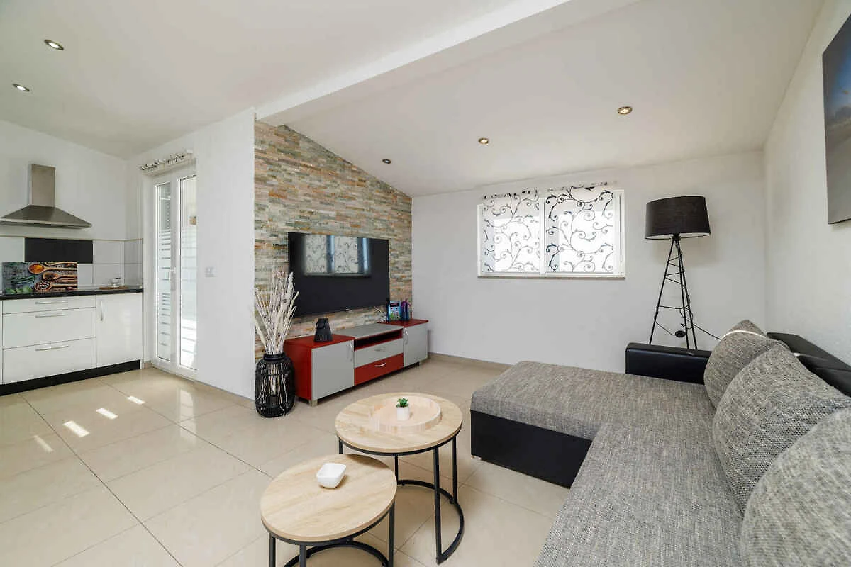 Ligging: Selce. De vakantiewoning ligt in een appartementenhuis en is modern ingericht. Het grondstuk is in het centrum. Deze plaats is populair vanwege het uitzicht op de zee. De toegangsweg naar het terrein gaat via een zijstraat. Bij het huis zijn parkeerplaatsen op het perceel beschikbaar. De dichtsbijzijnde winkels zijn op 200 m afstand, restaurant 200 m en centrum 400 m.
