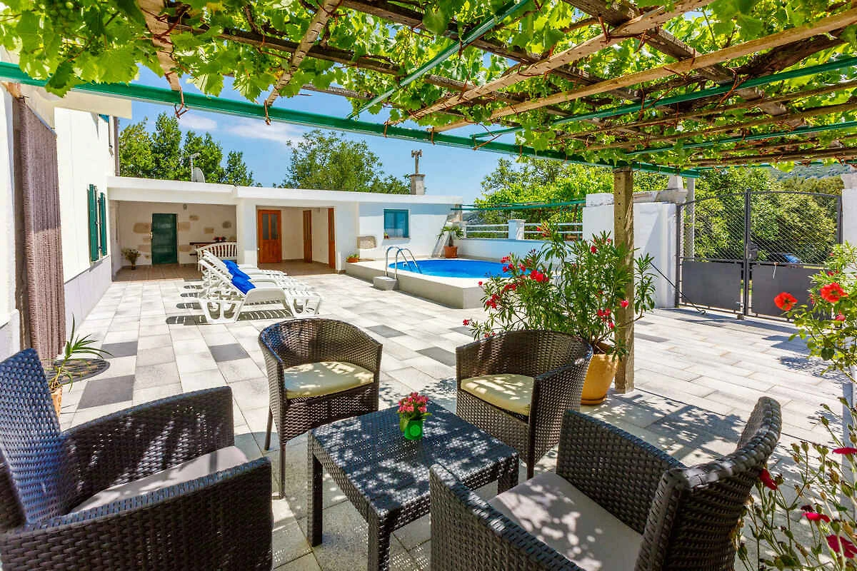 Het vakantiehuis ligt op een gesloten terrein. Het terrein is met een hek omsloten. De inrichting is voor u privé gebruik beschikbaar. U kunt buiten relaxen op het terras met paviljoen, ligstoel en tuinmeubeklen. Een barbecue is aanwezig. Het privé te gebruiken zwembad heeft een buitenzwembad.