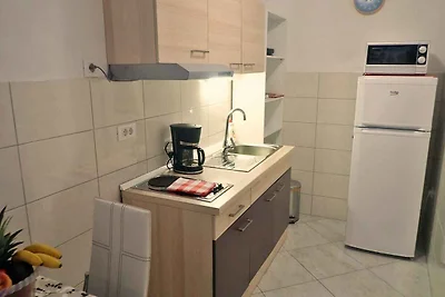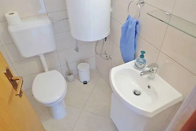 Ligging: Tribanj-Obicaj. De vakantiewoning ligt in een appartementenhuis en is functioneel ingericht. Het grondstuk is aan de rand van de plaats. Deze plaats is populair vanwege het uitzicht op de zee en het ligt bij het water. De toegangsweg naar het terrein gaat via een geasfalteerde hoofdweg. Openbare parkeerplaatsen zijn op de straat voor het huis. De dichtsbijzijnde winkels zijn op 1000 m afstand, restaurant 500 m en centrum 1000 m. dokter, apotheek, bank elk 15 km. vliegveld in 45 km.