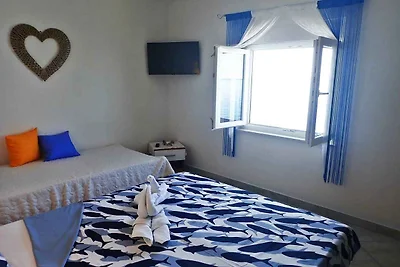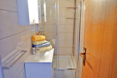 Uw vakantiewoning: Uw vakantiewoning beslaat 1 verdieping, 2 kamers (daarvan 1 slaapkamer), is 40 m² groot en is geschikt voor maximaal 3 personen. Een airconditioning zorgt op hete dagen voor een aangename temperatuur. De ingang is im Erdgeschoss. De indeling van de kamers is als volgt: eetkamer met eethoek en Terras met tafel en stoelen. De eethoek heeft plaats voor 3 personen. slaapkamer 14 m² groot en met 1 tweepersoonsbed en 1 éénpersoonsbed en TV. kookhoek met elektrisch fornuis (2 kookplaat), afzuigkap, koelkast (vriesvak), magnetron en elektrische waterkoker. badkamer met douche en 1 wastafel. aparte WC met 1 wastafel en WC.