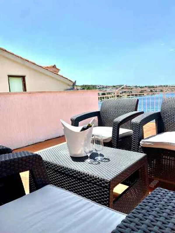 Uw vakantiewoning: Uw vakantiewoning beslaat 2 verdiepingen, 2 kamers (daarvan 1 slaapkamer), is 120 m² groot en is geschikt voor maximaal 4 personen. Een airconditioning zorgt op hete dagen voor een aangename temperatuur. De indeling van de kamers is als volgt: woonkamer met 2 éénpersoonsbedden en zithoek. kookhoek in de woonkamer met eethoek, gasfornuis (4 pitten), bakoven, koelkast, magnetron, koffiemachine en elektrische waterkoker. De eethoek heeft plaats voor 4 personen. slaapkamer 15 m² groot en met 1 tweepersoonsbed. badkamer met douche en WC. aparte WC met 1 wastafel en WC.