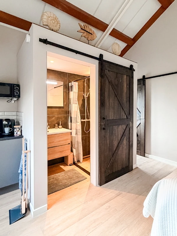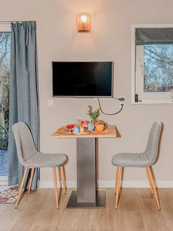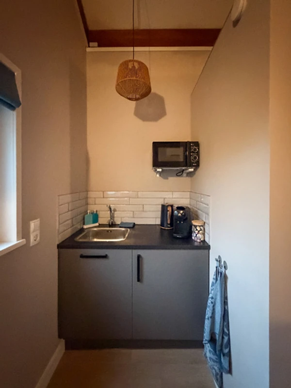 Ons B&B blinkt uit in gezellig en comfortabel interieur. De slaapkamer is voorzien van een comfortabel bed, nachtkastlampjes en hoogwaardig beddengoed. De kamer is modern en functioneel. Het beschikt over een toilet, een spiegel en een douche. De keukeneenheid is uitgerust met een waterkoker en een koffiezetapparaat, zodat u op elk moment van de dag zelf een hete koffie of thee kunt zetten. Voor entertainment is er een televisie, die u gemakkelijk vanuit bed kunt gebruiken.