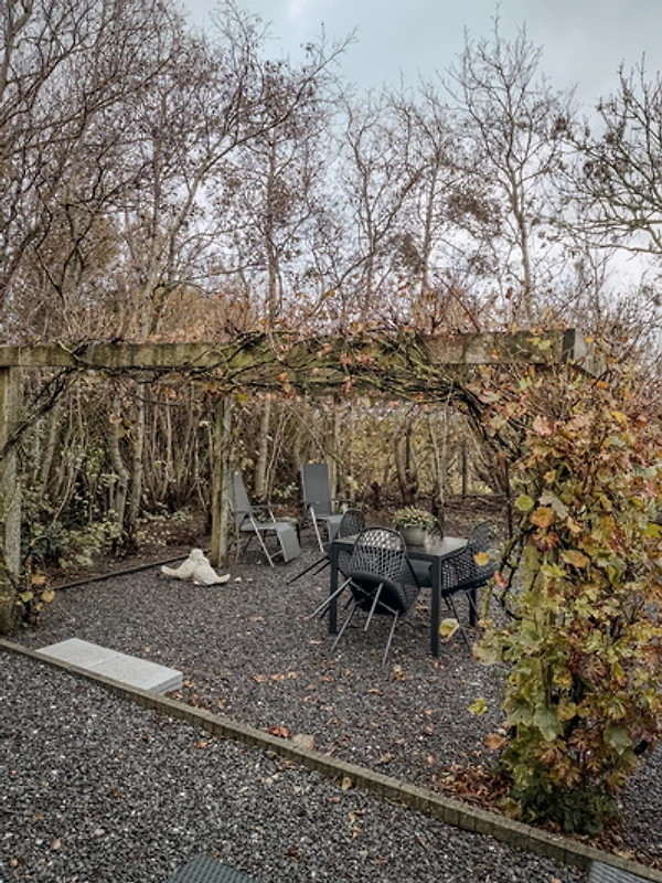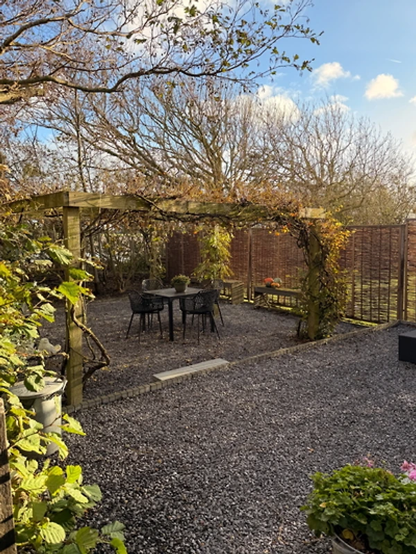 Geniet van de frisse lucht op ons terras, dat omgeven is door groene planten en bloemen. Het natuurlijke landschap en het uitzicht op de zee zorgen voor een ontspannen en rustige sfeer.