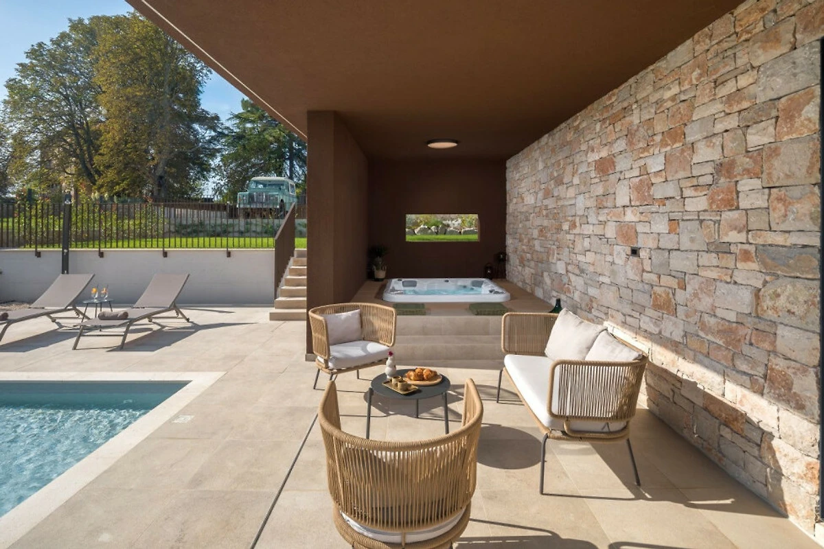 De villa in Kaštelir heeft 3 slaapkamer(s) en kan gereserveerd worden tot 6 personen.