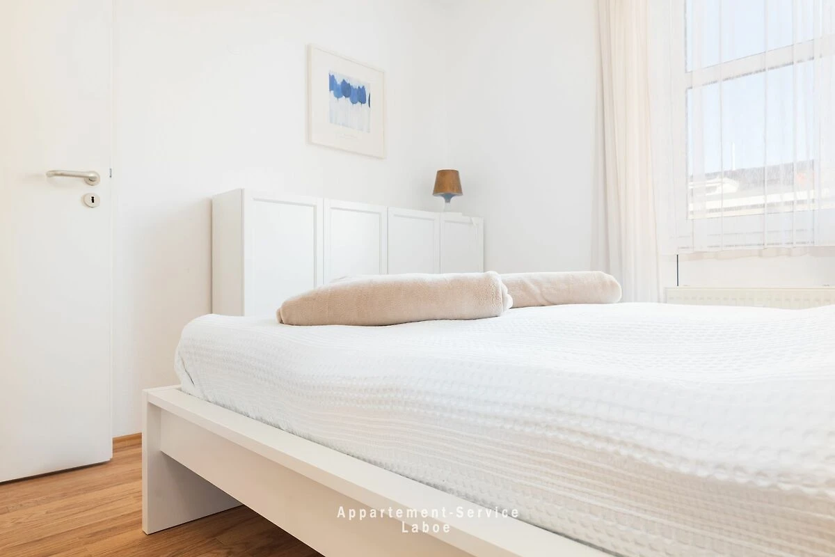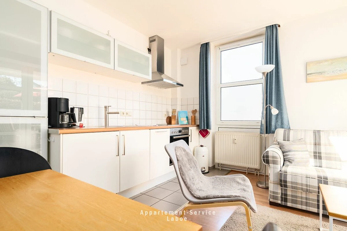 Een zeer mooi, modern appartement met een klein terras. Het ontbrak aan niets qua inrichting. De locatie is zeer goed. Bijzondere lof gaat uit naar de appartement-service Laboe: altijd bereikbaar en zeer vriendelijk en behulpzaam. De fietsverhuur was ook zeer eenvoudig met een ruime keuze aan goede fietsen. We komen zeker terug en hebben het ook al aanbevolen.