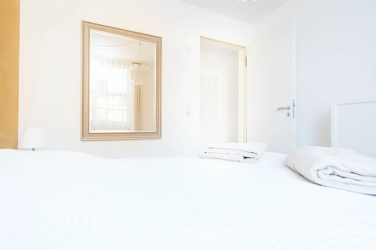 Het appartement is onlangs gerenoveerd en modern. De meubels zijn allemaal in nieuwstaat. De keuken is uitgerust met alles wat je nodig hebt. De slaapkamer heeft een bed (1,60 x 2,00 m) met een doorlopende matras. Als je zelf je beddengoed meeneemt, neem dan in ieder geval een groot hoeslaken of een groot beddengoed mee. Heb je beide niet bij de hand, dan kun je contact opnemen met de receptie van de appartementendienst, waar je dit kunt bestellen. Heb ik ook gedaan, was heel eenvoudig. Dank u wel nogmaals aan Dennis. Matras (niet doorgelegen) dekbedden en kussens, ook alles nieuw. We hebben erg goed geslapen. Bad is voldoende groot en er is genoeg ruimte om je badartikelen op te bergen. We kunnen deze FeWo 100% aanbevelen. We komen in augustus terug. Vriendelijke groeten uit Gelsenkirchen, Sabine en Matthias.