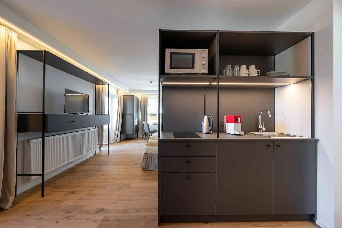 Uw vakantiewoning: Uw studio beslaat 1 verdieping, 1 kamers, is 40 m² groot en is geschikt voor maximaal 2 personen. Op koude dagen kan uw studio verwarmd worden met centrale verwarming. Roken is binnen niet toegestaan. De indeling van de kamers is als volgt: woonkamer met 1 tweepersoonsbed, zithoek, TV en Gratis kluisje, kinderbedje mogelijk wegens overbevolking: Ja. U heeft toegang tot het balkon. Kooknis met koelkast, magnetron, koffiemachine, elektrische waterkoker en Gas- of elektrisch fornuis, basis keukenapparatuur. badkamer met 1 wastafel, haardroger en Bad of douche. aparte WC met WC.