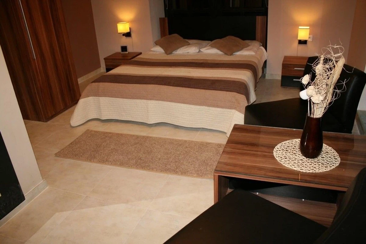 Grote vakantievilla met privézwembad, rustig gelegen, op een omheind privéterrein. Het huis bestaat uit 2 verdiepingen. Op de begane grond bevindt zich een grote woonkamer (eetkamer) met een tafeltennistafel en een open haard (de eerste levering van hout is bij de prijs inbegrepen). Naast de eetkamer is er een kleine speelkamer voor kinderen en een ruimte met fitnessapparatuur. Op de begane grond bevinden zich verder 2 slaapkamers (waarvan 1 doorgang), een badkamer met douche en een goed uitgeruste keuken. Op de eerste verdieping bevinden zich nog 5 slaapkamers (waarvan 1 doorgang), 4 badkamers (3 met douche, 1 met ligbad) en 4 aparte kitchenettes. Er is een groot, overdekt terras met tuinmeubilair en een barbecuehaard. Centrale + vloerverwarming. De uitrusting omvat een wasmachine. Draadloos internet is beschikbaar.