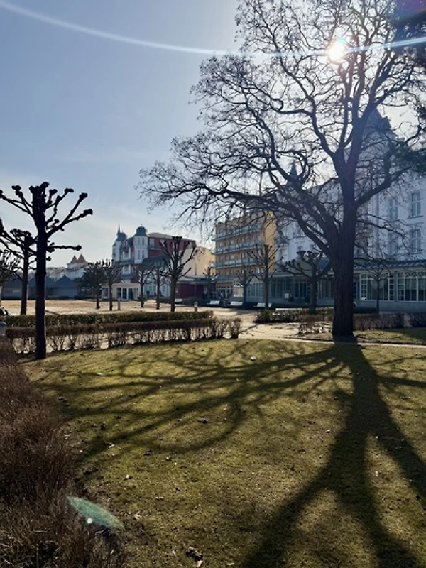 Het ruime, zonnige perceel in een rustige ligging in de badplaats Zinnowitz aan de Oostzee ligt op ca. 600m van het station en ca. 1,1km van het strand, winkelmogelijkheden op 400m, restaurants op 500m bereikbaar, zwembad en bioscoop zijn in de plaats eveneens te voet bereikbaar.