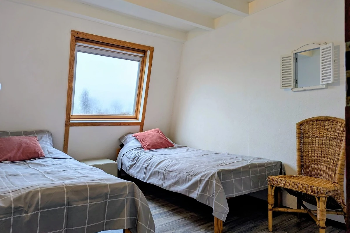 Slaapkamer beneden: 2 eenpersoonsbedden.