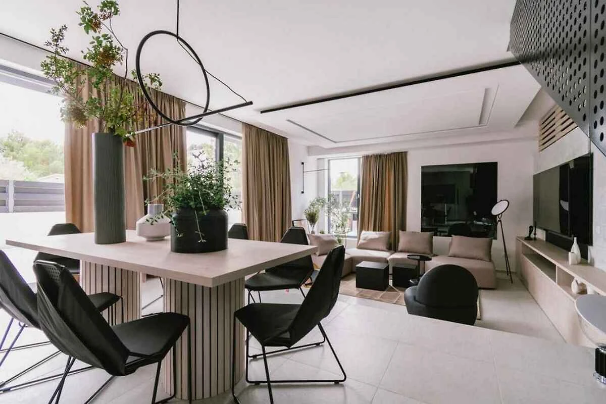Uw vakantiehuis: Uw vakantiehuis heeft 2 verdiepingen, 5 kamers (daarvan 4 slaapkamers), is 200 m² groot en is geschikt voor maximaal 8 personen. Een airconditioning zorgt op hete dagen voor een aangename temperatuur. Op koude dagen kan uw vakantiehuis verwarmd worden met een elektrische verwarming. De indeling van de kamers is als volgt: woonkamer met zithoek, eethoek en TV. De eethoek heeft plaats voor 8 personen. U heeft toegang tot het balkon. slaapkamer 20 m² groot en met 1 tweepersoonsbed. U heeft toegang tot het balkon. 3 slaapkamer elk 16 m² groot en met 1 tweepersoonsbed. U heeft toegang tot het balkon. keuken met afwasmachine, elektrisch fornuis (keramische kookplaat, 4 kookplaat), bakoven, koelkast (vriesvak), magnetron, koffiemachine, broodrooster en elektrische waterkoker. 2 badkamer elk met douche, 1 wastafel en WC. badkamer met douche, 1 wastafel, WC, haardroger en wasmachine.
