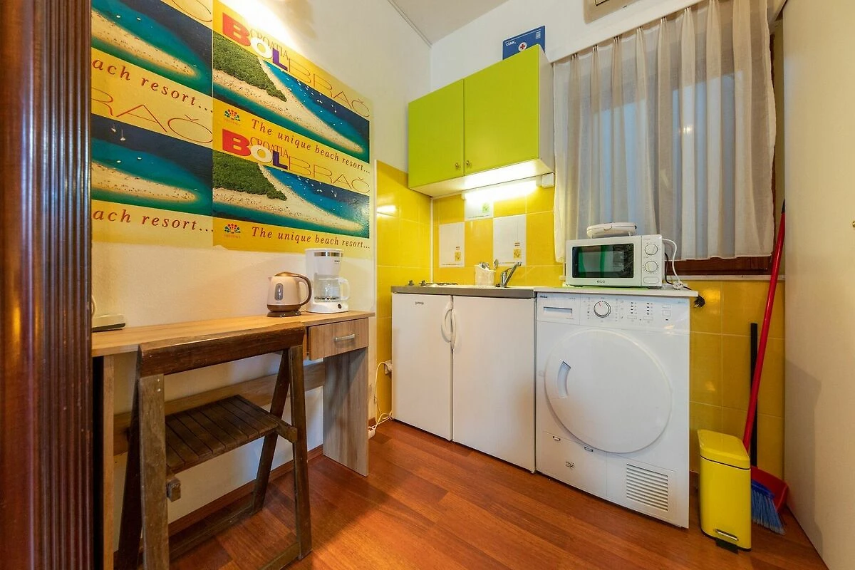 Ik heb onlangs in dit studio-appartement verbleven en was aangenaam verrast door hoe goed de kitchenette was uitgerust. Het maakte het bereiden van eenvoudige maaltijden een fluitje van een cent, en het hebben van een koelkast was een groot pluspunt om drankjes koud te houden.