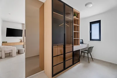 Slaapkamer nr. 4 (18 m²) met kingsize bed (180 cm x 200 cm), eigen badkamer met douche (5 m²), airconditioning, tv, uitzicht op zee en balkon. Er is ook een wasruimte beschikbaar met wasmachine, droger en strijkbenodigdheden. Het kristalheldere zeewater is vrij speciaal voor de nabijgelegen regio, vanwege de locatie van Rogoznica en de oceaanstromingen. Grijp de kans om te genieten van de voordelen die schoon en warm zeewater voor u heeft, want de lijst van gezondheidsvoordelen is bijna eindeloos.