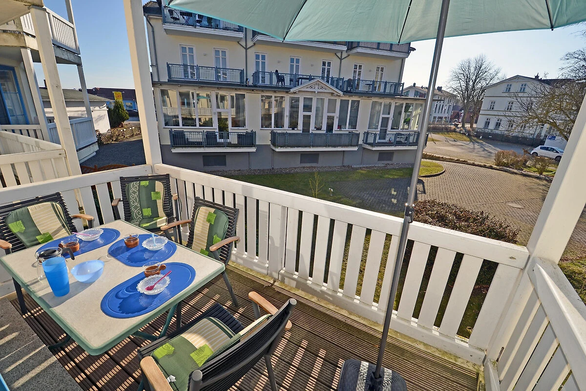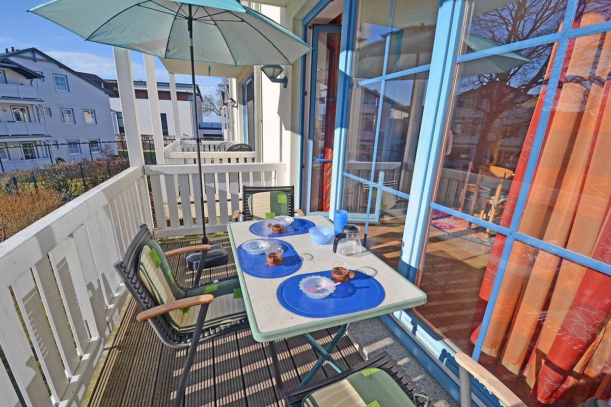 Westbalkon met tuinmeubelen en parasol