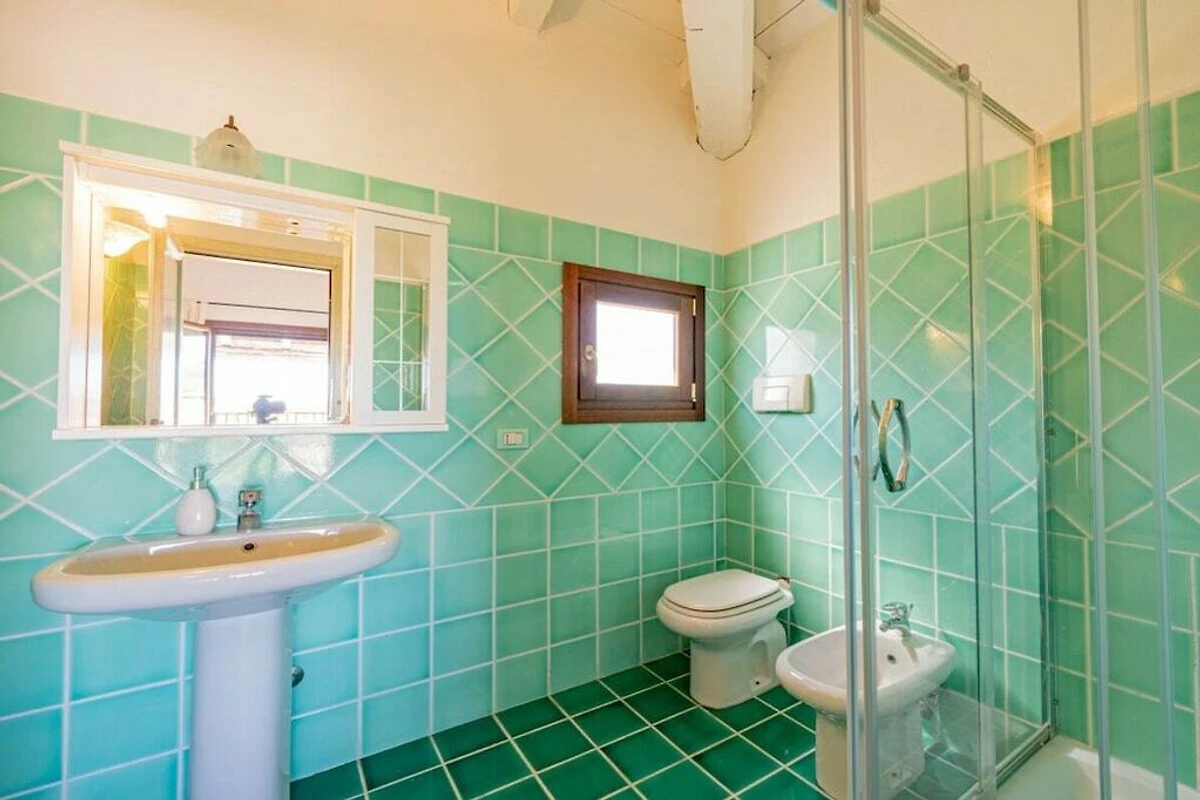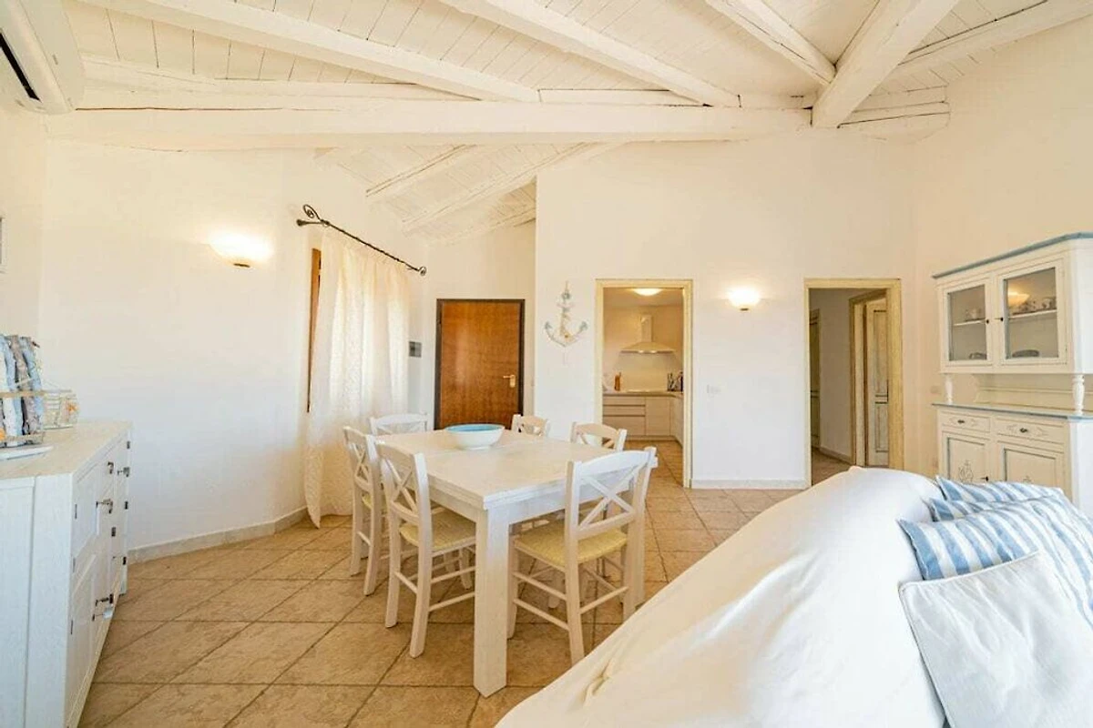 Het appartement, gelegen op de eerste en laatste verdieping, wordt gekenmerkt door typisch lokaal meubilair en patronen en wordt gecompleteerd door een plafond met zichtbare balken die warmte en helderheid aan de omgeving geven. U komt uit op de grote woonkamer, die is uitgerust met een tafel, een dressoir, een bank en een televisie. Vanaf hier hebben gasten toegang tot de aparte keuken, die is uitgerust met tal van keukenapparatuur, waaronder een oven, een vaatwasser, een broodrooster, een waterkoker en een espressomachine. Het woongedeelte wordt gekenmerkt door een groot openslaand raam dat naar het terras leidt, dat is ingericht met banken en fauteuils en ook een ruimte bevat met een kitchenette, een barbecue en een eettafel.