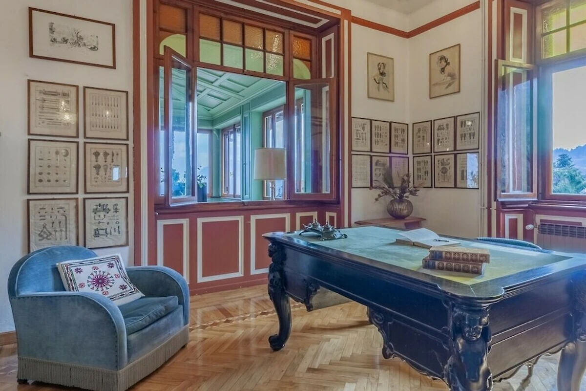 Deze villa is verdeeld over twee verdiepingen en verwelkomt gasten met een grote tuin uitgerust met een barbecue, tafel, stoelen, banken en een parasol. De entree komt uit op een gang die de kamers op de begane grond met elkaar verbindt. Aan de linkerkant vinden de gasten een slaapkamer met een queensize bed, aan de rechterkant een ruime eetkamer met een werkruimte die uitkomt op de geweldige veranda die wordt gekenmerkt door grote ramen met uitzicht op het meer en met banken, fauteuils, een bureau, een koffiezetapparaat. tafel, stoelen en een televisie. Linksonder bevindt zich de aparte keuken met eettafel, bijkeuken en open haard. Het is volledig uitgerust met een oven, vaatwasser, magnetron, waterkoker, broodrooster, fruitpers en espressomachine.
