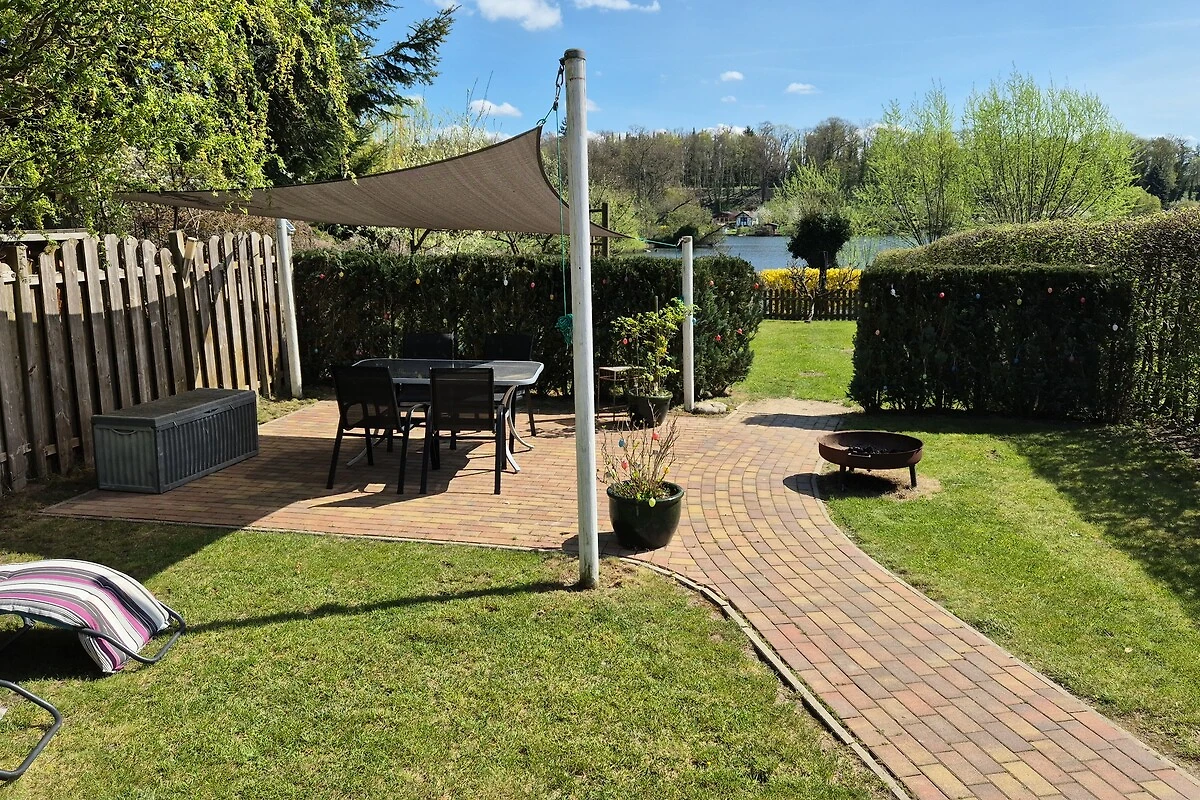 Buiten vindt u een prachtig aangelegde tuin met een terras en een barbecue, ideaal voor gezellige avonden buiten. Geniet van de rust en de schoonheid van de natuur terwijl u ontspant op comfortabel tuinmeubilair. Het vakantiehuisperceel is volledig omheind, ook zodat eventueel aanwezige kinderen niet direct bij het water kunnen komen. Zoals op de foto's te zien is, heeft u aan de Tiefwarensee uw eigen zitgelegenheid, roeiboot, zwemsteiger en vuurplaats.