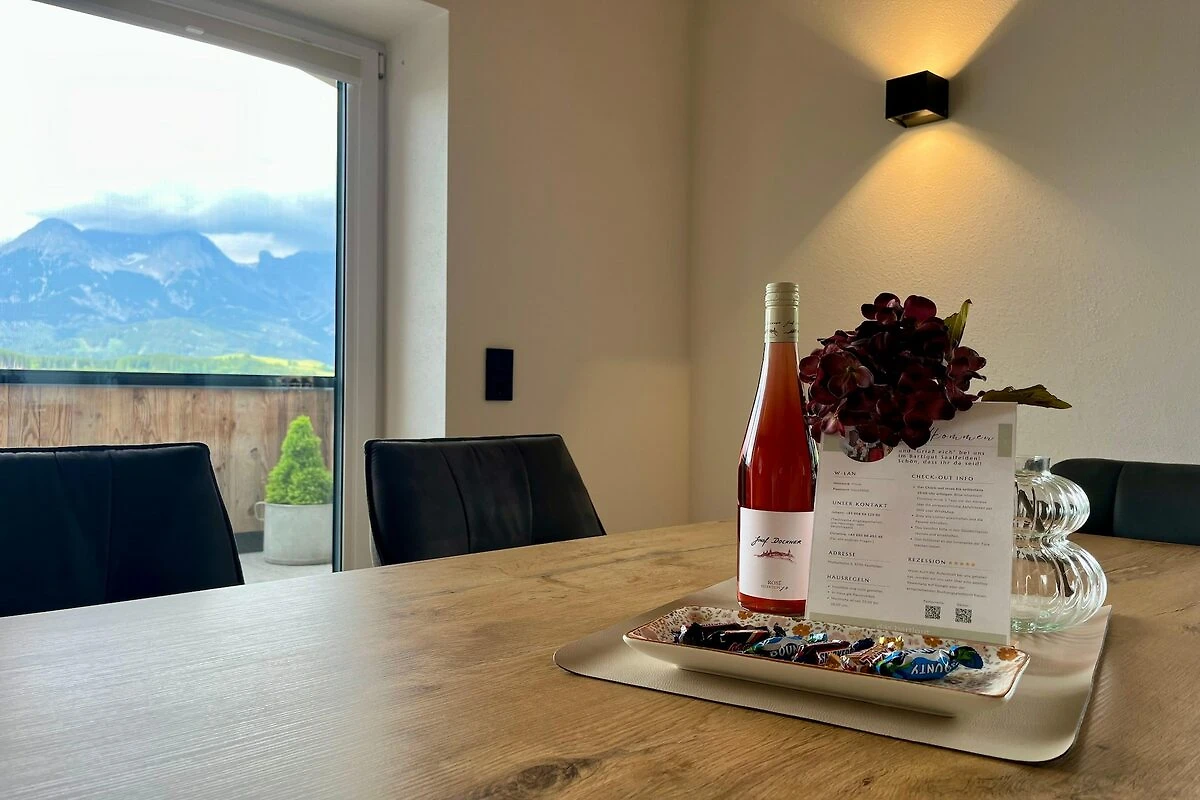 Penthouse was prachtig ingericht en goed uitgerust, we hadden de rustieke sfeer en het adembenemende uitzicht op de Leoganger Steinberge, het was een goede industriële basis voor een aantal van de gebouwen,