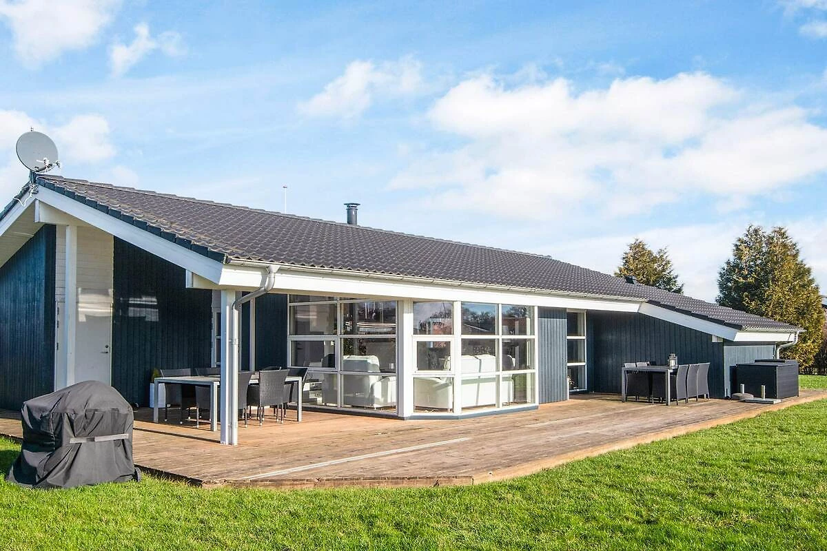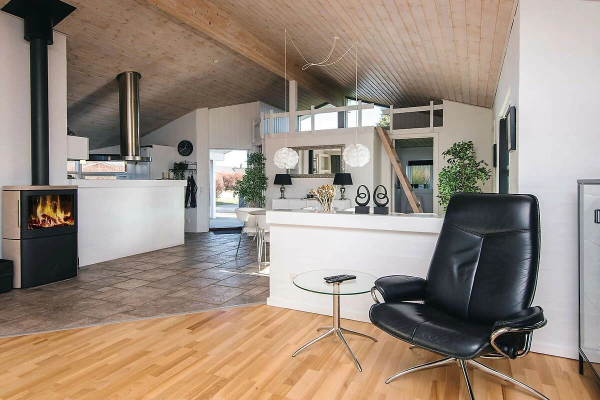 , keuken(kachel(inductie), koffiezetapparaat, oven, magnetron, afwasmachine, koelkast(+ vriesvak)), woon/slaapkamer(TV(duitse zender(s), Deense TV zenders (DR1 en TV2), noorse TV zenders (NRK en TV2), zweedse TV zenders), DVD-speler, chromecast), slaapkamer(2-pers. bed), slaapkamer(2-pers. bed), slaapkamer(2-pers. bed), badkamer(wasbak, douche, toilet, wasmachine), badkamer(wasbak, douche, toilet), veranda, bubbelbad(in huis, verwarmd, 2 personen), verwarming(elektrisch), tuin, tuinmeubilair, ligstoelen, lucht-lucht warmtepomp