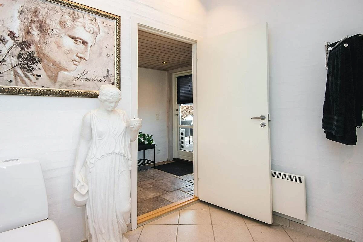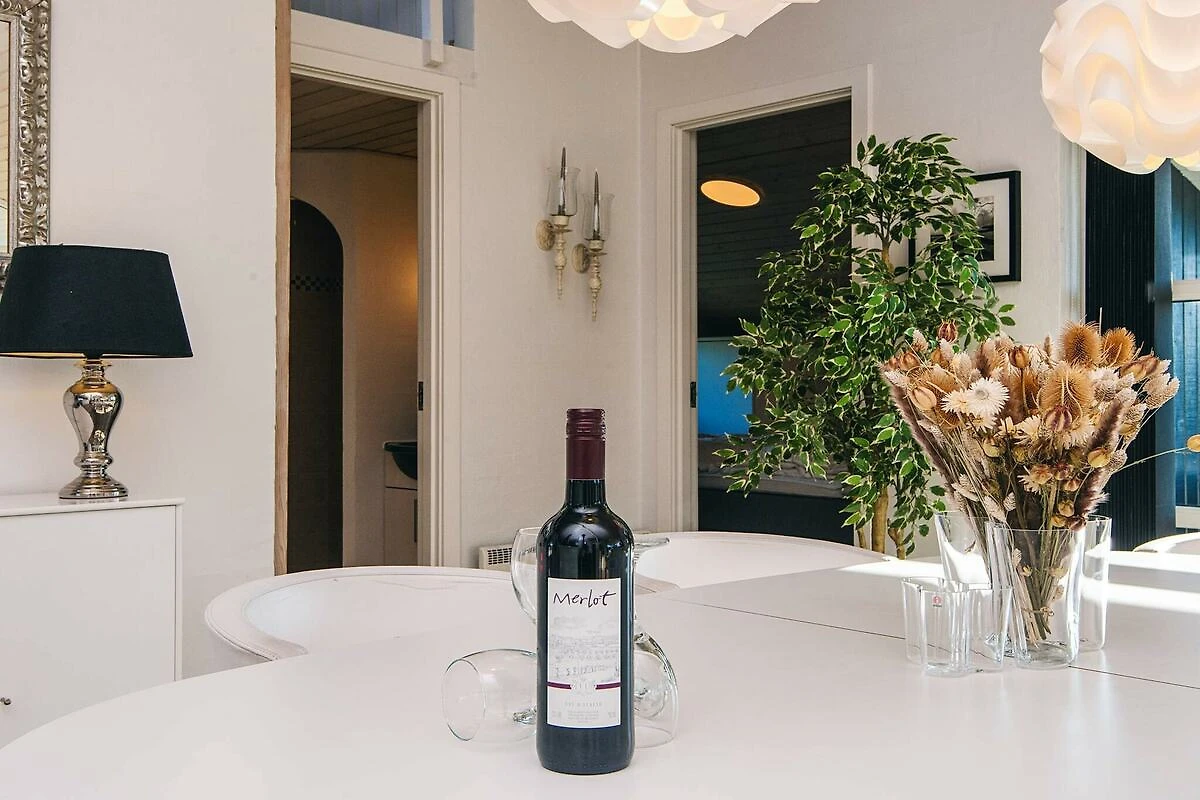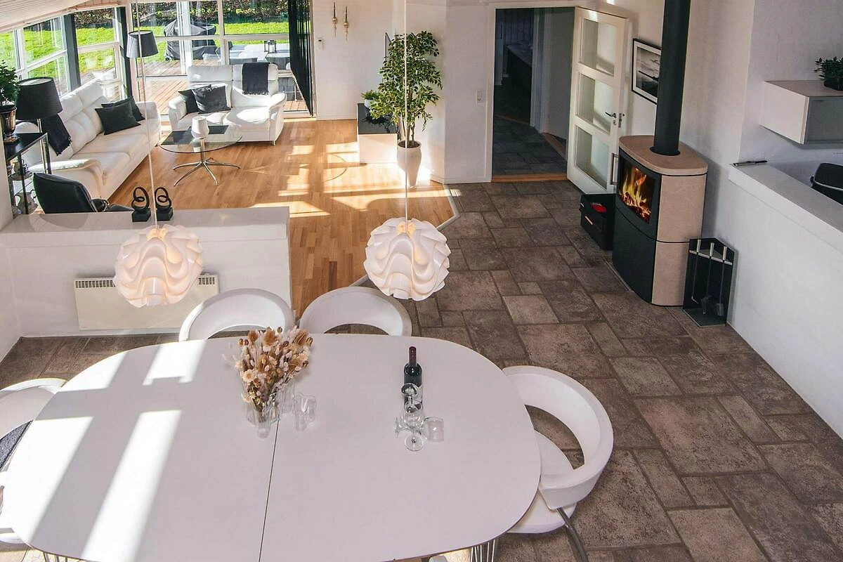Keuken(kachel(inductie), koffiezetapparaat, oven, magnetron, afwasmachine, koelkast(+ vriesvak)), woon/slaapkamer(TV(duitse zender(s), Deense TV zenders (DR1 en TV2), noorse TV zenders (NRK en TV2), zweedse TV zenders), DVD-speler, chromecast), slaapkamer(2-pers. bed), slaapkamer(2-pers. bed), slaapkamer(2-pers. bed), badkamer(wasbak, douche, toilet, wasmachine), badkamer(wasbak, douche, toilet), veranda, bubbelbad(in huis, verwarmd, 2 personen), verwarming(elektrisch), tuin, tuinmeubilair, ligbedden, lucht-lucht warmtepomp