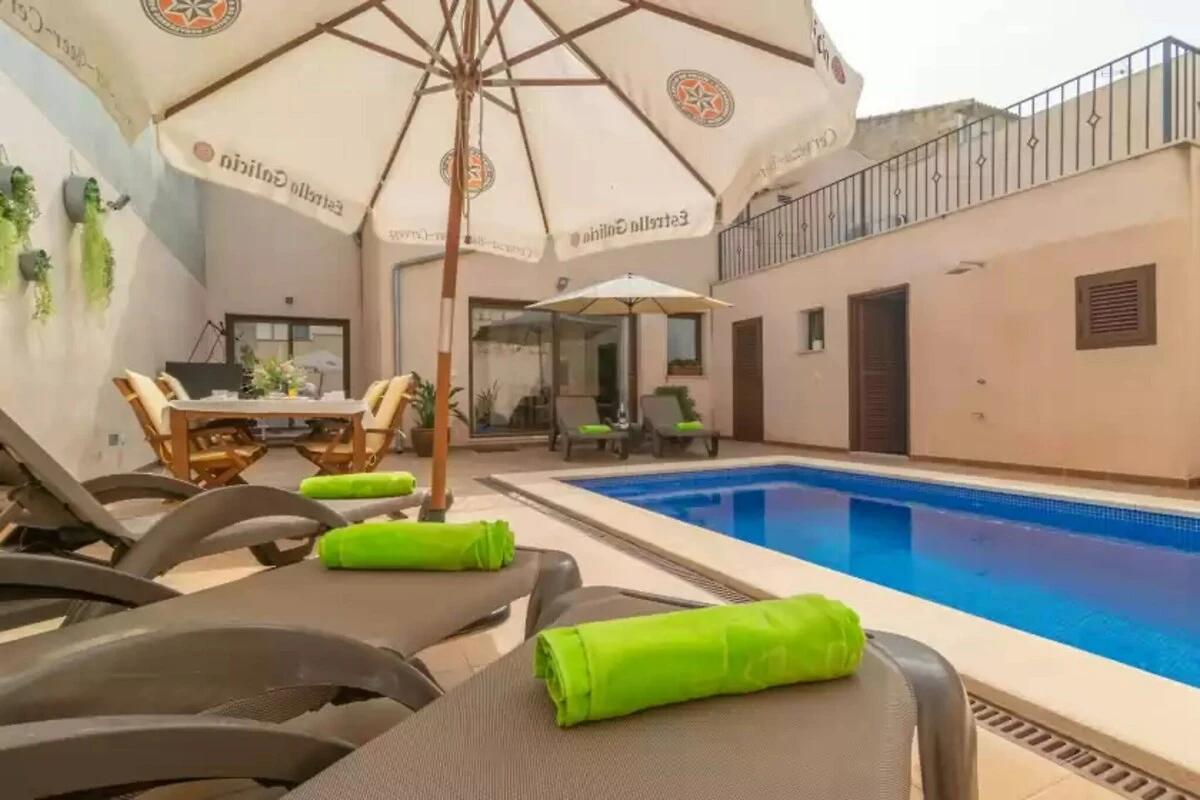 Deze gastvrije villa met twee verdiepingen in Sa Pobla is perfect om te genieten van de relaxte levensstijl van Mallorca. Het terras beschikt over een zoutwaterzwembad (5,5 x 3,6 m, diepte 1,55-1,70 m), ligstoelen en een barbecueplek, ideaal voor een ontbijt of diner in de buitenlucht. Een zonneterras op de bovenverdieping, bereikbaar via een buitentrap, biedt een rustige plek om te ontspannen met een drankje.