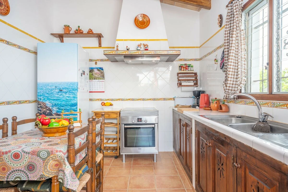 Inside this charming rustic but modern property, distributed on a single floor, a decoration with agricultural elements stands out that gives it a cozy atmosphere. The spacious living room offers two comfortable sofas, air conditioning and a Smart TV for entertainment. Two well-equipped kitchens, one inside the main building and the other in a separate area, both with a gas stove and all the amenities to prepare delicious dishes. For rest, two bedrooms: one with a double bed, fan and wardrobe; and another with two single beds, air conditioning and wardrobe. Two bathrooms with shower complete the facilities. In addition, for added convenience, a washing machine, iron and ironing board are available. For those traveling with babies, a cot and high chair are provided, ensuring a comfortable stay for the whole family.