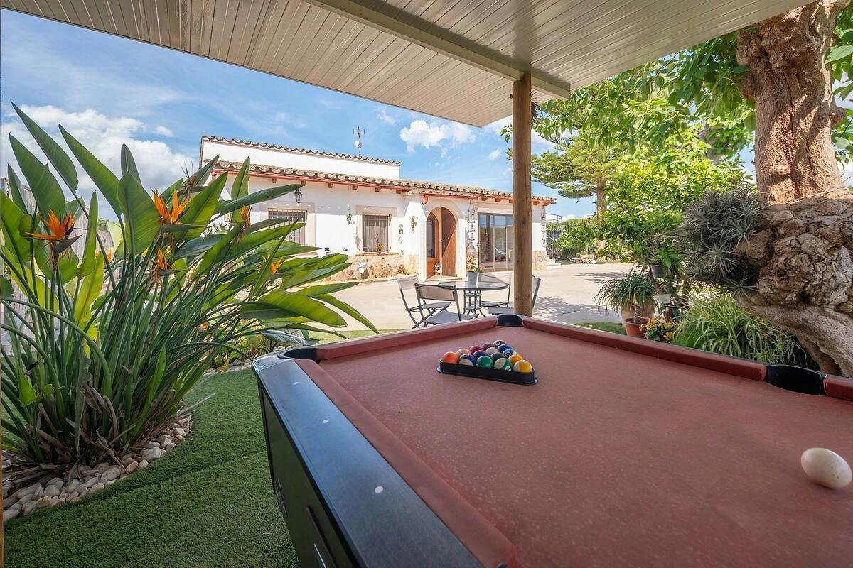 The estate offers a lovely outdoor space with a 10 meter wide, variable depth circular chlorine pool, ideal for cooling off and relaxing. In addition, it has amenities for entertaining, such as a barbecue area to enjoy delicious meals outdoors, a furnished porch for comfortable lounging, a trampoline for children's fun, a foosball table and a pool table for recreational games, as well as a darts area for exciting challenges. Highlighting even more, there is a charming treehouse designed especially for the little ones, providing a safe and exciting space for their recreation.