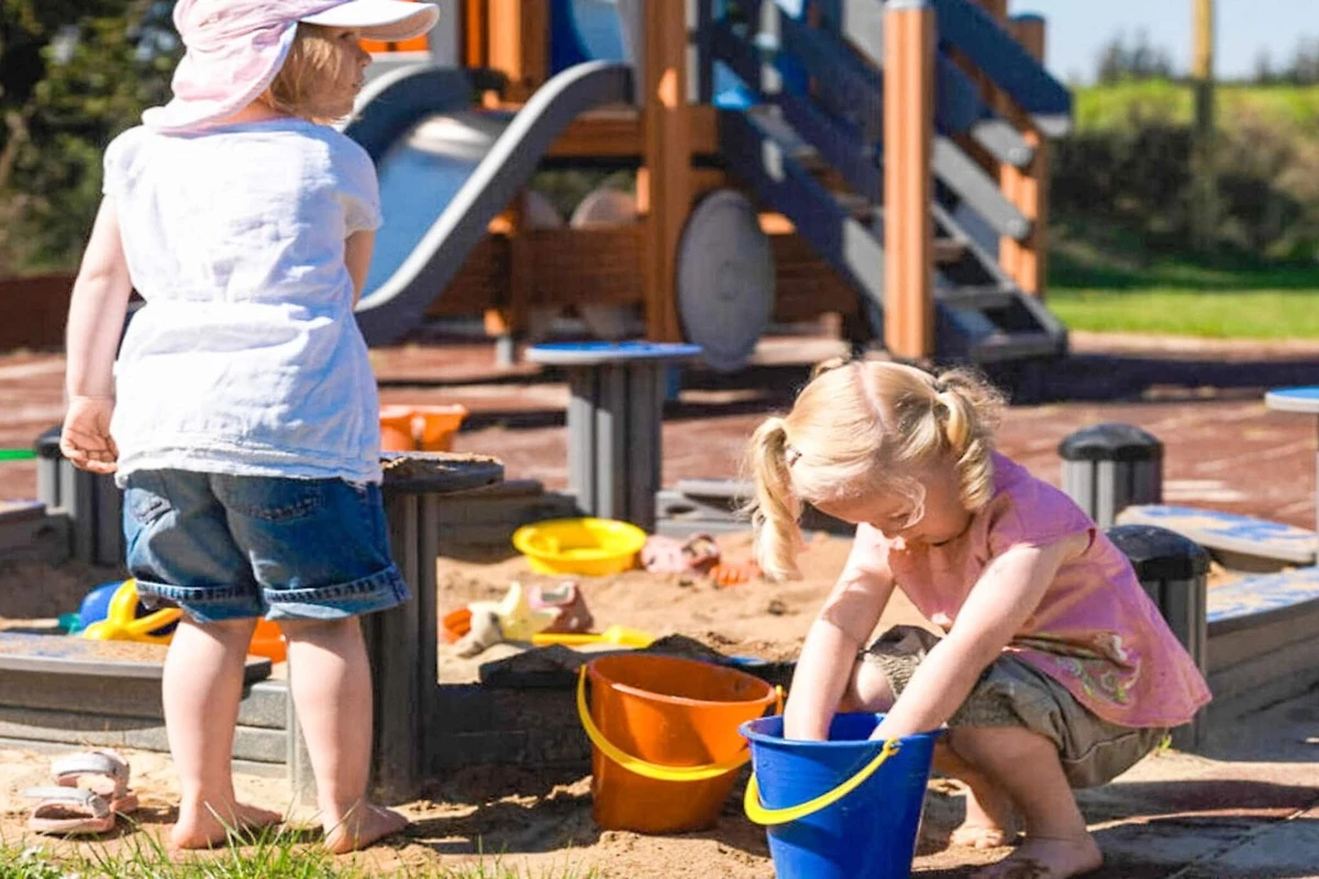 Een heerlijke speeltuin voor kinderen, een zwembad en een sauna tot uw beschikking