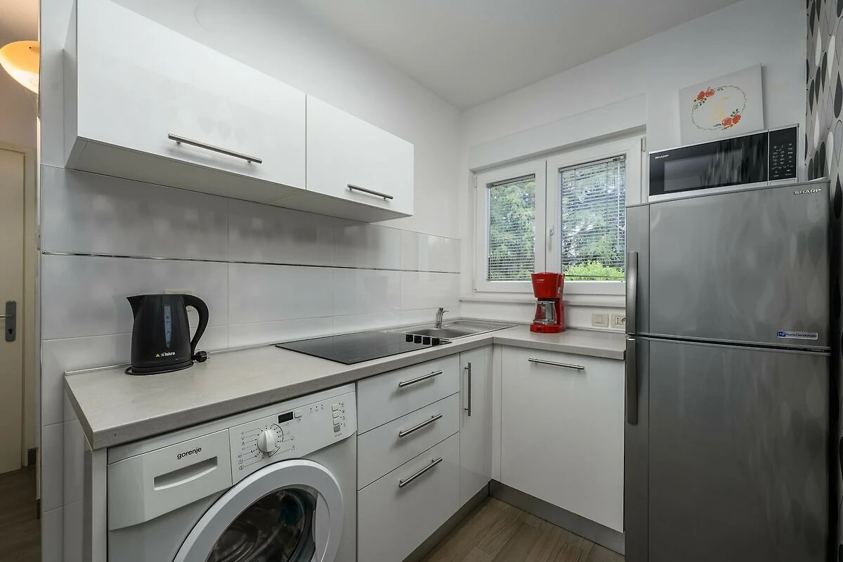 Dit appartement was een geweldige keuze voor onze reis, Het had alles wat we nodig hadden, inclusief een wasmachine en een goed uitgeruste keuken, Het uitzicht op de tuin was een leuke touch, en het hebben van een supermarkt om de hoek was zeer handig, De nabijgelegen stranden waren prachtig, vooral Borik Beach, dat minder dan een kilometer verderop lag, Al met al een praktische en comfortabele verblijf
