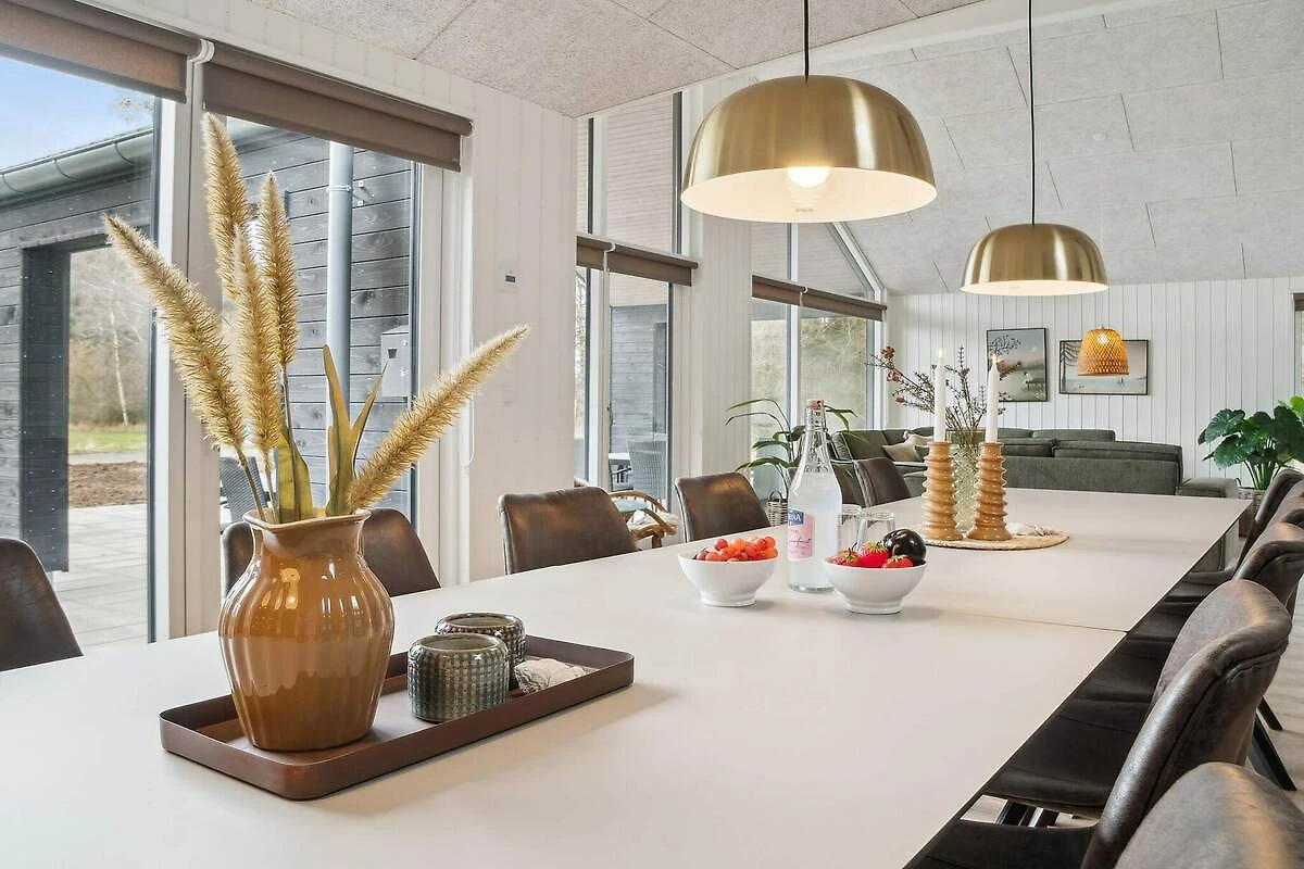 Bornholm ist eine der schönsten Urlaubsinseln Dänemarks und dieses schöne DanCenter-Poolhaus in Sømarken bietet den perfekten Rahmen für einen unvergesslichen Urlaub. Das Haus bietet Platz für 16 Personen und ist somit ideal für Großfamilien oder Freundesgruppen, die gemeinsam einen erholsamen Urlaub genießen möchten. Die Lage in der Nähe von Dueodde bietet einfachen Zugang zu den wunderschönen weißen Sandstränden und dem ruhigen, familienfreundlichen Wasser. Das geräumige Feriendomizil bietet zahlreiche Aktivitäten für alle Altersgruppen. Im Aktivitätsraum können Sie sich beim Billard, Tischtennis, Tischfußball und Darts messen – perfekte Möglichkeiten für lustige und spannende Wettkämpfe. Wenn Sie eine Pause brauchen, können Sie es sich in der Sitzecke gemütlich machen und die Spiele von der Seitenlinie aus verfolgen. Das Ferienhaus verfügt über sechs komfortable Doppelzimmer und vier zusätzliche Schlafplätze oben auf dem Dachboden im Aktivitätsraum – ein beliebter Ort für Kinder und Jugendliche. Insgesamt gibt es drei Badezimmer, sodass ausreichend Platz ist. Wenn das Wetter nicht zu einem Bad im Meer einlädt, können Sie den Innenpool genießen oder im Außen-Spa auf der Terrasse entspannen und anschließend in die Sauna gehen. Hier gibt es reichlich Gelegenheit zum Wohlfühlen und Entspannen. Die große Wohnküche ist der natürliche Treffpunkt des Hauses, wo Sie köstliche Mahlzeiten zubereiten und am langen Esstisch genießen können. Der Holzofen sorgt für eine gemütliche Atmosphäre und spendet an kühlen Tagen zusätzliche Wärme. Draußen können Sie die Sonne Bornholms auf der Terrasse genießen, wo es einen Grill und bequeme Gartenmöbel gibt. Die Kinder können auf dem Trampolin, der Schaukel oder im Spielturm toben, während die Erwachsenen entspannen und die schöne Natur genießen. Keine Vermietung an Jugendgruppen erwünscht! Bitte beachten Sie, dass es sich bei den gezeigten Fotos um Demobilder handelt, da sich das Haus noch im Bau befindet und das fertige Haus daher von den gezeigten Fotos abweichen kann.
