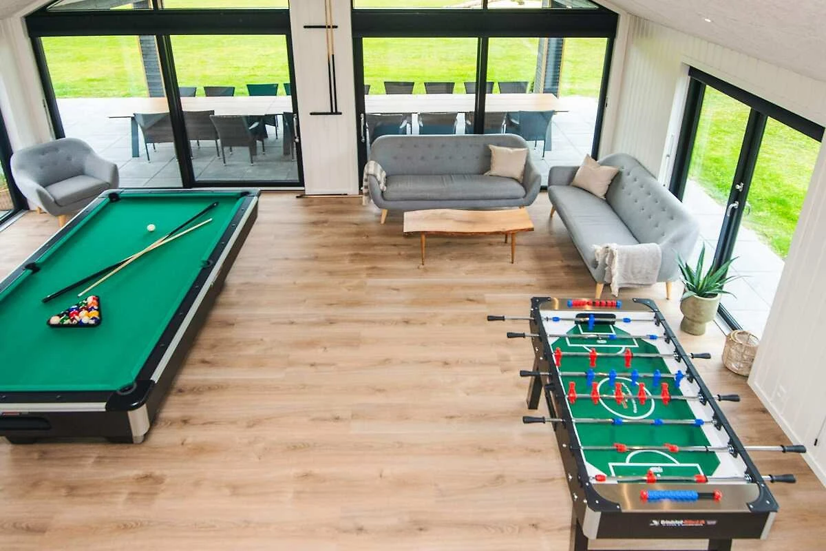 , woonkamer(2x 1-pers. bed), woonkamer(2x 1-pers. bed), keuken(kachel(inductie), koffiezetapparaat, oven, magnetron, afwasmachine, koelkast, vriezer(> 250L)), woon/slaapkamer(TV(duitse zender(s), Deense TV zenders (DR1 en TV2), noorse TV zenders (NRK en TV2), zweedse TV zenders)), slaapkamer(2-pers. bed), slaapkamer(2-pers. bed), slaapkamer(2-pers. bed), slaapkamer(2x 1-pers. bed), slaapkamer(2-pers. bed), slaapkamer(2x 1-pers. bed), badkamer(wasbak, douche, toilet), badkamer(wasbak, douche, toilet), badkamer(wasbak, douche, toilet), bijkeuken(wasdroger, wasmachine), TV(duitse zender(s), Deense TV zenders (DR1 en TV2), noorse TV zenders (NRK en TV2), zweedse TV zenders), spelcomputer, stereo-installatie, bubbelbad(buiten, verwarmd, 6 personen), verwarming(elektrisch), terras, tuin, tuinmeubilair, ligstoelen, biljart, aardwarmte