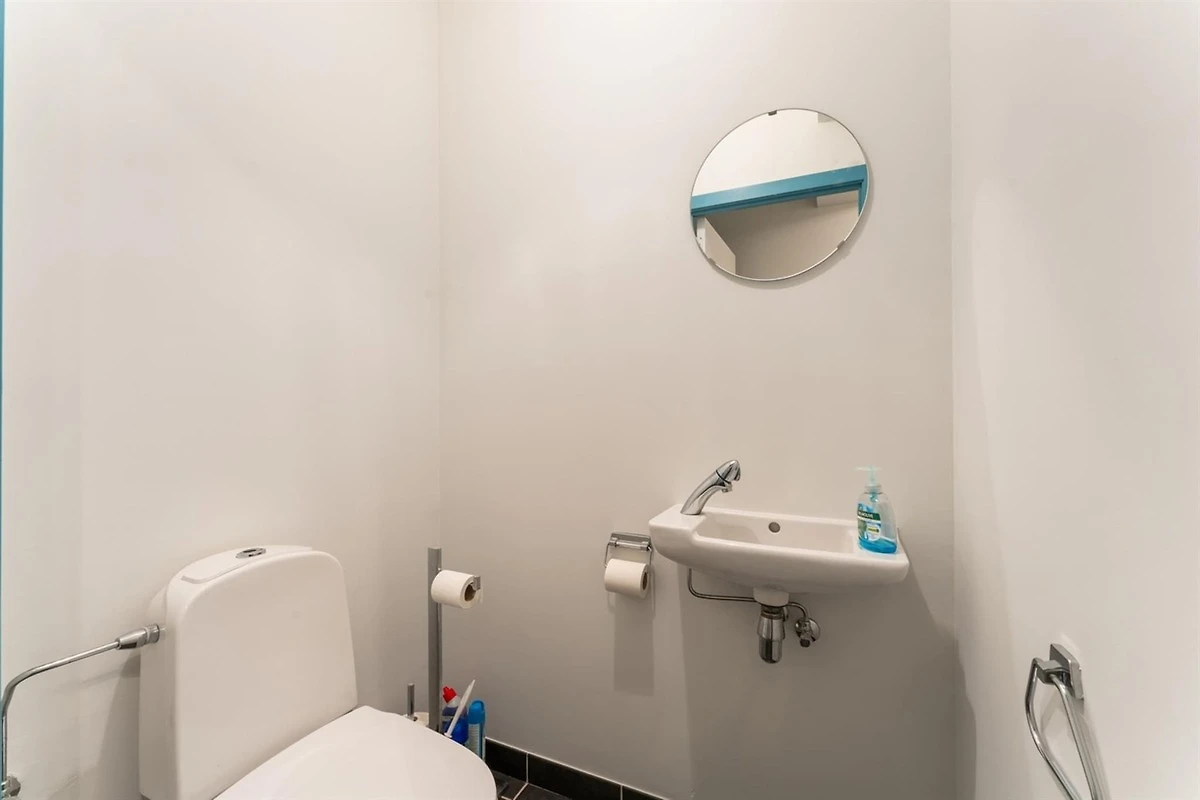 Op de 6e etage: (gang(wastafel, toilet), keuken(kachel, waterkoker, broodrooster, koffiezetapparaat(espresso), espresso apparaat, oven, afwasmachine, koel-/vriescombinatie, Citruspers), woon/eetkamer(TV(flatscreen, digital), eettafel(6 personen), zithoek, radio), slaapkamer met badkamer(2-pers. bed(160 x 200 cm), ligbad, wastafel, toilet), slaapkamer met badkamer(stapelbed(90 x 200 cm), ledikant, douche, wastafel, toilet), berging, balkon of terras)