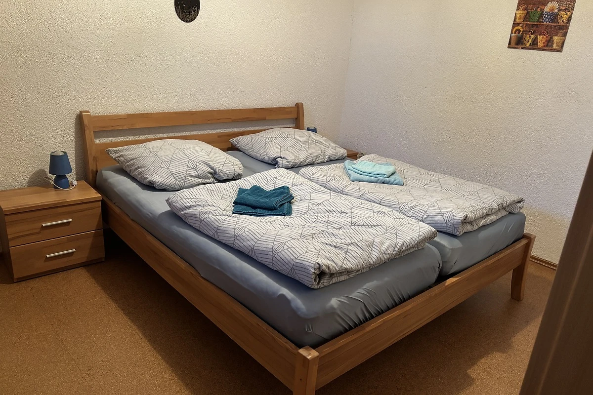 Apart slaapkamer met comfortabel tweepersoonsbed (180x200) en verduisteringsmogelijkheden