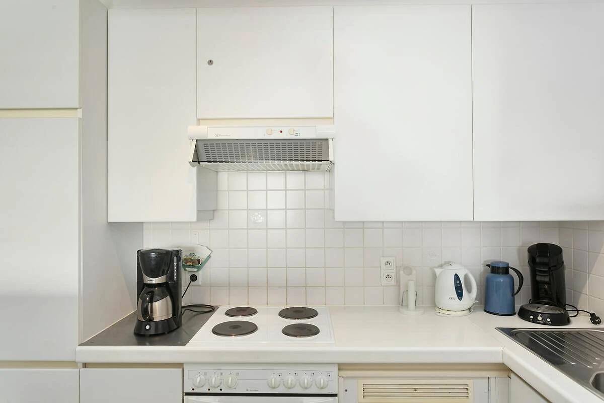 Op de 8e etage: (gang(toilet), woonkamer(TV(flatscreen, digital), eettafel, zithoek, DVD-speler, radio, CD-speler), open keuken(kookplaat(elektrisch), waterkoker, broodrooster, koffiezetapparaat, magnetron, afwasmachine, koel-/vriescombinatie), slaapkamer(2-pers. bed), slaapkamer(stapelbed(90 x 200 cm)), badkamer(douche, wastafel))
