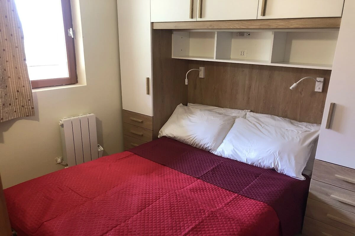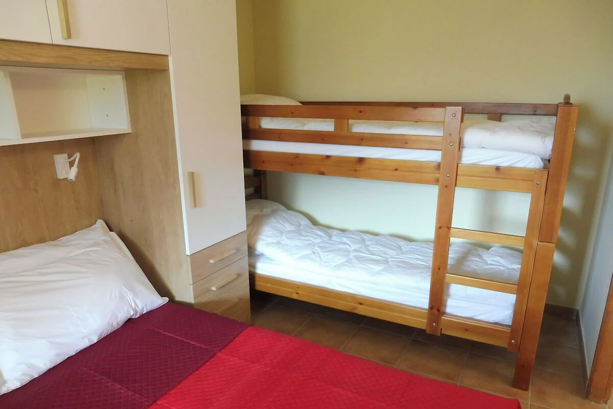 De slaapgelegenheid is zowel praktisch als comfortabel: een uitschuifbare slaapbank in de woonkamer en een aparte slaapkamer met een tweepersoonsbed en een stapelbed, perfect voor gezinnen of groepen vrienden. De badkamer is uitgerust met een douche, bidet en toilet, aangevuld met een extra apart toilet voor extra gemak.