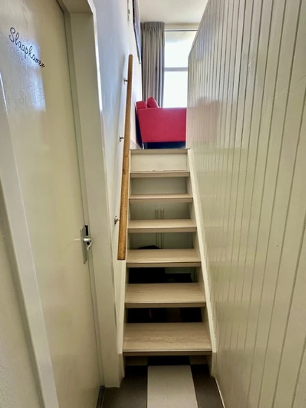 Via de trap bereikt u de woning. De open keuken is volledig uitgerust met o.a. een Nespresso- en filterkoffieapparaat, combimagnetron/oven etc. – alles wat u nodig heeft om een maaltijd te bereiden. Aangrenzend bevindt zich de badkamer. De badkamer is eenvoudig maar praktisch en biedt alles wat u nodig heeft: een douche, een wastafel en een haardroger.