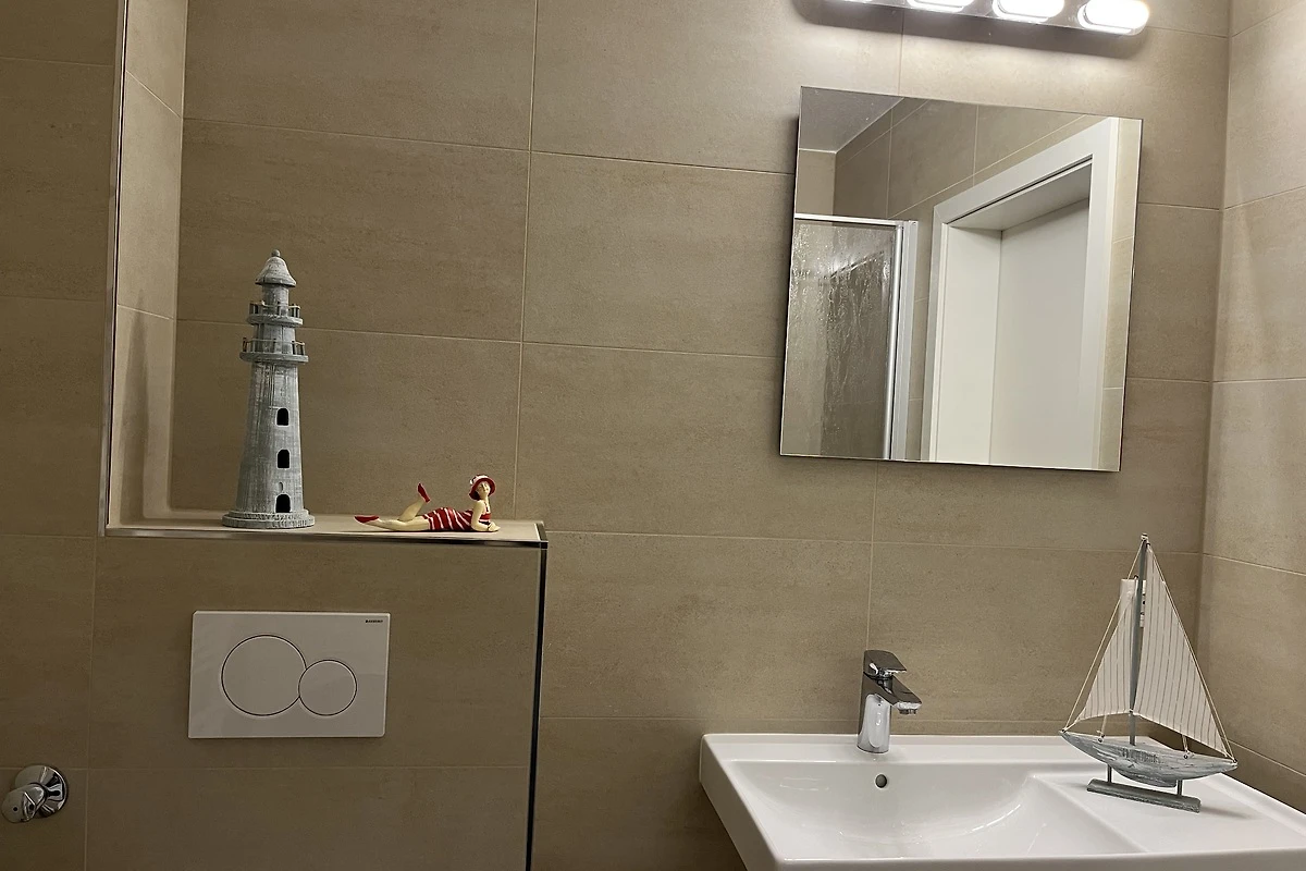 Holnis is een schiereiland dat zich 6 kilometer ten noordoosten van Glücksburg uitstrekt. Het bad- en kuurstrand in het dorp Drei wordt beschouwd als een van de mooiste stranden van de Flensburger Förder. Het is een kindvriendelijk, ondiep zandstrand met speeltuinen. Er is ook een surfstrand en een hondenstrand. Er is een Italiaans restaurant en een bistro in de directe omgeving van onze flat. Glücksburg is snel te bereiken met de bus, fiets of auto. Andere steden zoals Flensburg zijn ook gemakkelijk te bereiken. Het stadje Glücksburg biedt verschillende winkelmogelijkheden en attracties zoals kasteel Glücksburg. In de zomermaanden zijn veel van deze winkels ook op zondag geopend.
