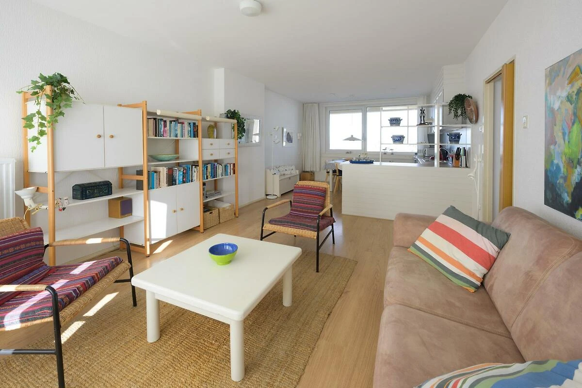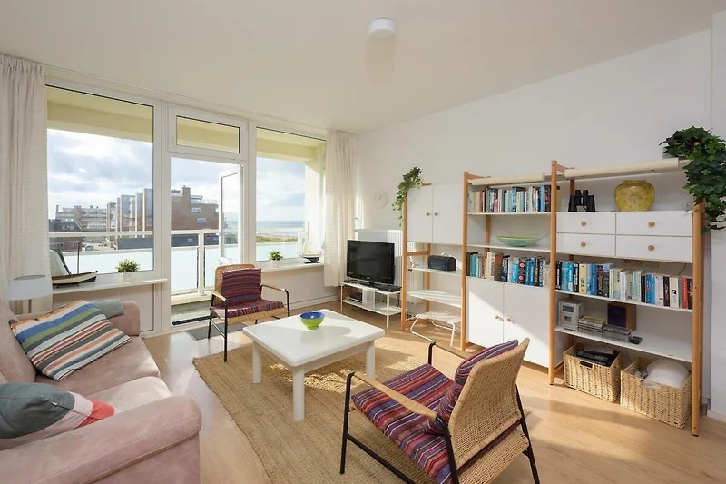 Prachtig uitzicht over zee en duinen met balkon op zuiden, apartement gezellig ingericht