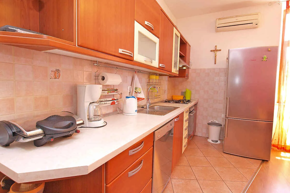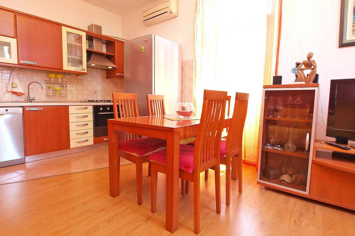 Ligging: Fažana. De vakantiewoning ligt in een appartementenhuis. Het grondstuk is in het centrum. Deze plaats is populair vanwege het ligt op een zonnige plek. Bij het huis zijn parkeerplaatsen op het perceel beschikbaar. De dichtsbijzijnde winkels zijn op 20 m afstand, restaurant 5 m en centrum 100 m.