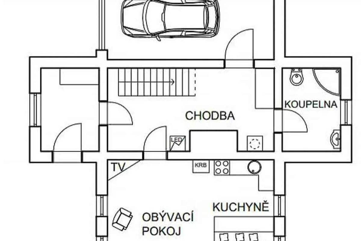 Het vakantiehuis ligt op een 250 m² groot, open terrein met bos met weide en struiken. De verhuurder woont niet in het huis of op het terrein. De inrichting is voor u privé gebruik beschikbaar. U kunt buiten relaxen op het terras of de ligweide met ligstoel en tuinmeubeklen. De speelplaats met zandbak laat kinderharten sneller slaan. Een barbecue is aanwezig. Romantische avonden belooft de kampvuurplaats. skluzavka. Overdekte pergola Het wellnessaanbod bestaat uit een sauna.