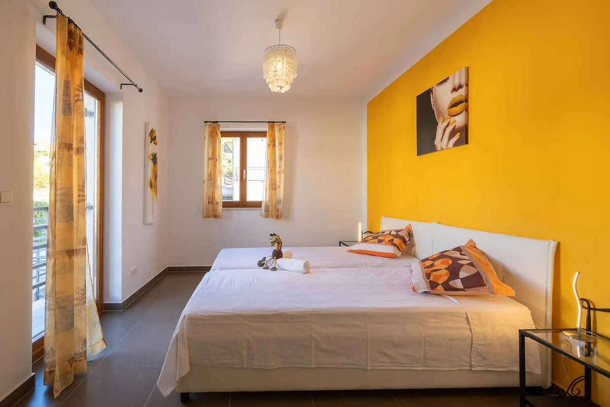 Uw vakantiewoning: Uw vakantiewoning beslaat 1 verdieping, 3 kamers (daarvan 2 slaapkamers), is 85 m² groot en is geschikt voor maximaal 4 personen. Een airconditioning zorgt op hete dagen voor een aangename temperatuur. Op koude dagen kan uw vakantiewoning verwarmd worden met een elektrische verwarming. De ingang is in der 1. Etage