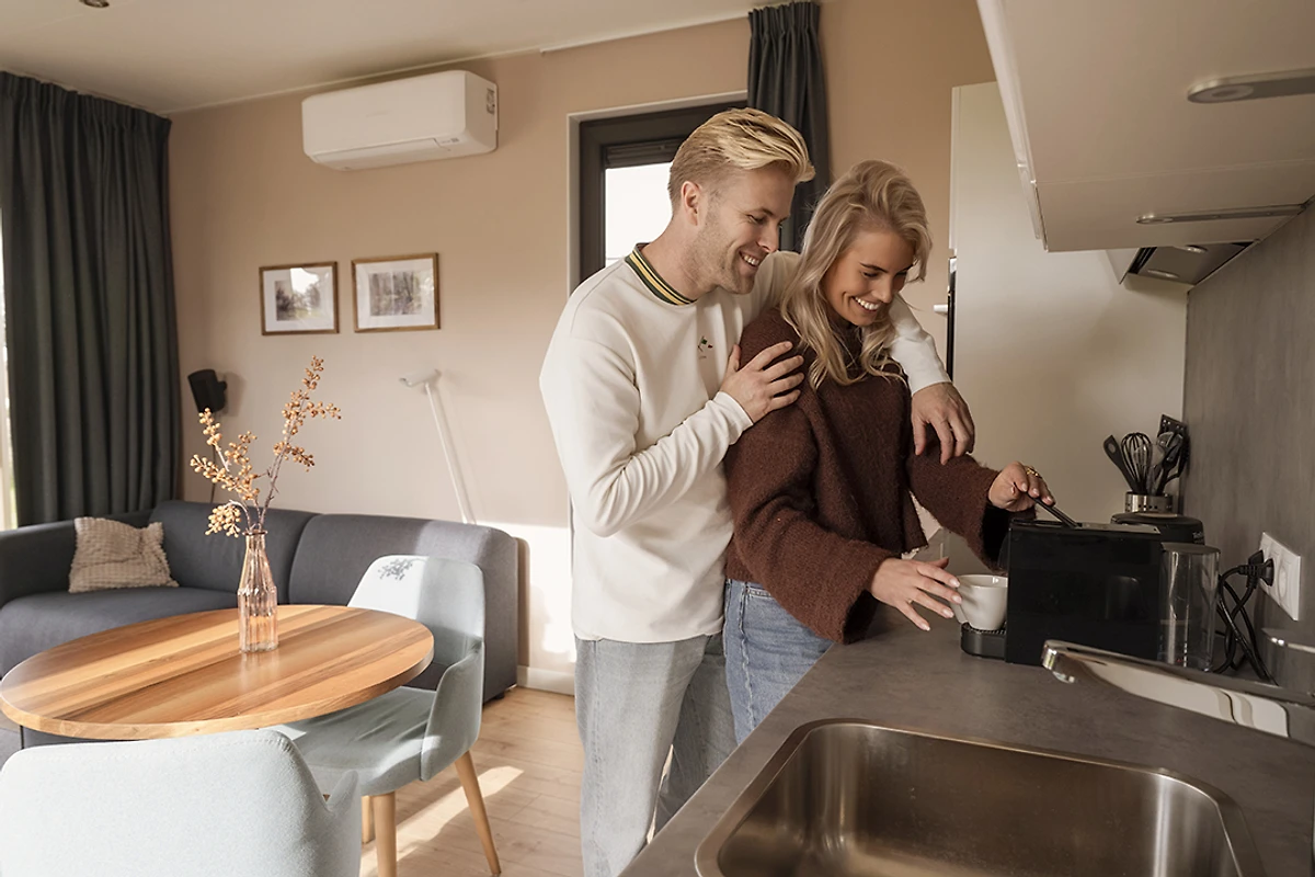 Vakantievilla Amalia 4 met sauna en hottubDe Vakantievilla Amalia 4 met eigen sauna en hottub, in de tuin, is ideaal om volledig tot rust te komen tijdens je vakantie. Het vakantiehuis, geschikt voor 1-4 personen, beschikt over een ruime woonkamer met open keuken.De keuken is volledig ingericht en voorzien van een koelkast met vriesvak, vaatwasser, inductiekookplaat, oven/magnetron en een Nespresso koffiezetapparaat.De villa beschikt over twee slaapkamers: één met een tweepersoonsbed en één met twee eenpersoonsbedden.Grote vloer-tot-plafondramen en een schuifpui zorgen voor veel daglicht in de woning. Hierdoor voelt de Amalia 4 met sauna en hottub als een vakantiewoning waarin je je direct thuis voelt. De hottub is elektrisch verwarmd en direct warm bij aankomst.Het royale terras, voorzien van een pergola en comfortabel tuinmeubilair, is de ideale plek om te ontspannen.Vakantiehuis met sauna, hottub én welkomstserviceDankzij onze welkomstservice ontbreekt het je aan niets. Bij aankomst liggen beddengoed, handdoeken en een keukenpakket al klaar in het vakantiehuis. Zo begint je vakantiegevoel direct bij het inpakken van je tas.Heb je extra handdoeken, beddengoed of een keukenpakket nodig? Deze kun je eenvoudig bijbestellen. Lees meer over onze services via deze link.ParkerenBij het vakantiehuis is ruimte voor één auto. Eventuele extra auto's kunnen op de algemene parkeerplaatsen worden geparkeerd.HuisdierenIn enkele van onze vakantiehuizen zijn huisdieren van harte welkom. Wil je je huisdier meenemen? Geen probleem! Tijdens het boeken kun je eenvoudig je reisgezelschap aanpassen en controleren of er nog accommodaties beschikbaar zijn waar huisdieren zijn toegestaan. Er mogen maximaal twee huisdieren per vakantiehuis verblijven.Park in ontwikkelingWe willen je graag informeren dat ons park nog in ontwikkeling is. Hierdoor zijn niet alle faciliteiten op dit moment beschikbaar en kunnen er bouwwerkzaamheden plaatsvinden.Uiteraard doen wij ons uiterste best om eventuele overlast tot een minimum te beperken en je vakantiegevoel niet te verstoren. Mocht je toch hinder ervaren, meld dit dan bij de receptie. Samen zoeken we naar een passende oplossing.